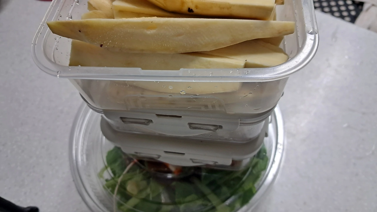 오늘 직장 점심도시락은 텃밭표 루꼴라 샐러드와 생고구마 스틱이다. 생고구마는 어렸을 때 겨울간식으로 깎아먹던 기억이 난다. 저녁도시락은 퇴근하고 자정까지 스터디카페용 밥과 닭갈비다.