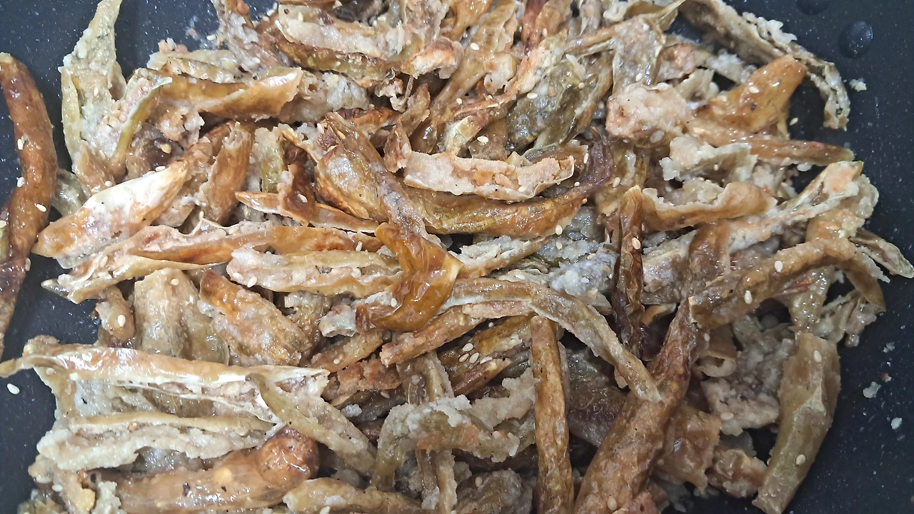과자보다 더 바삭하다. 달콤 고소한 맛에 점심도시락 밥반찬으로 딱이다. 아들에게 엄마의 추억 음식인데 한 번 먹어보라 했다. 한입 먹다 접시에 뱉는다. 맵단다. 딸은 고추 말리는 냄새가 기억나서 못 먹겠단다. 나처럼 세월이 흐른 뒤에 엄마의 음식으로 기억하려나보다.