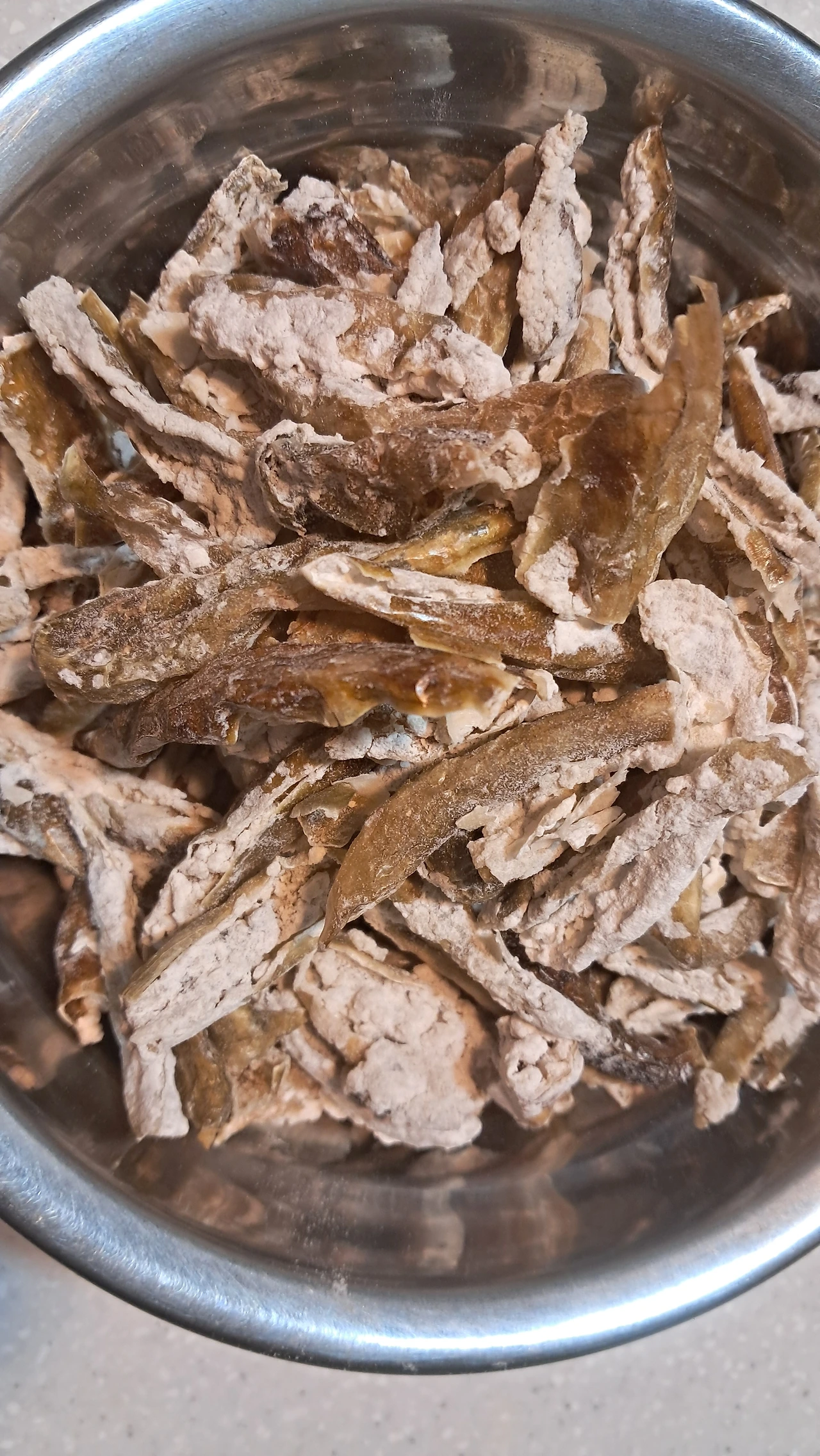 찹쌀가루가 없어 튀김가루를 묻혀 삶았다. 우리 집 베란다 태양이 뜨겁지 않아 가정용 건조기에 말렸다. 당근에서 1만 원에 구입한 건조기는 10만 원어치의 일을 한다.