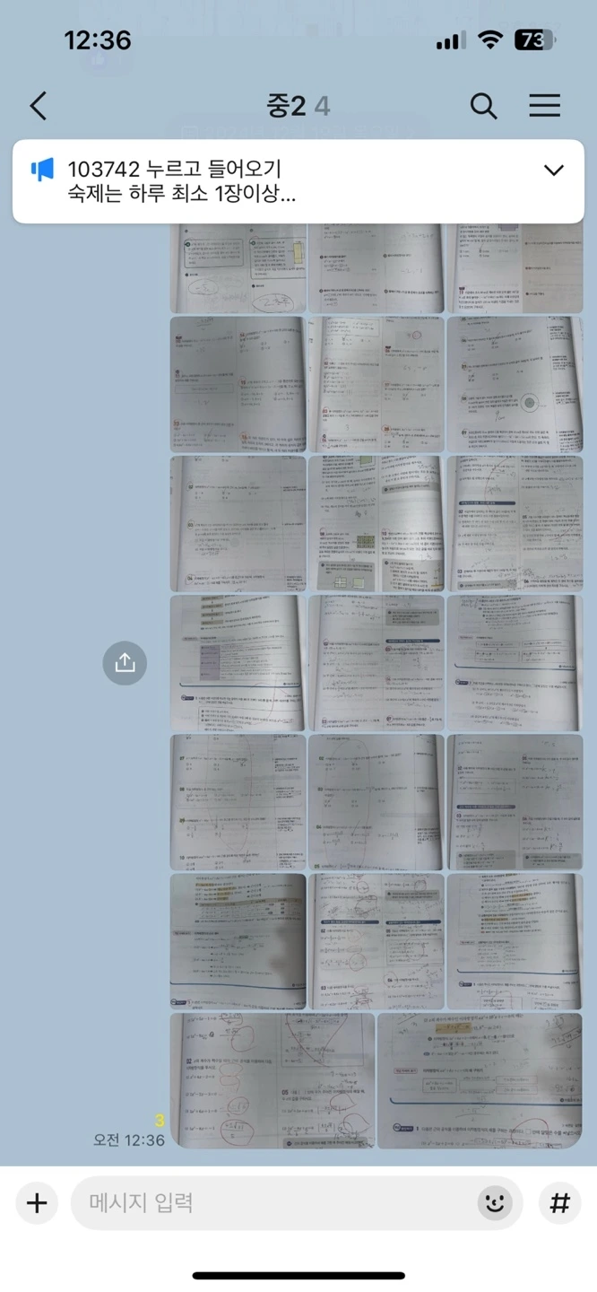 학원 톡방의 다른 친구 답안을 확대해 보여주며 이 아이는 많이 틀렸다고도 했다. 아들은 베꼈기에 틀린 걸 확인할 방법이 없다. 아들은 부모를 안심시키기 위해 학원 숙제 톡의 캡처사진도 가족 단톡방에 보내놨다. 희미하다.