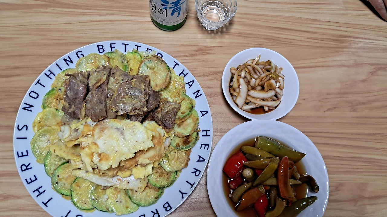 애호박은 초등 딸에게 썰기부터 밑간, 밀가루 바르기를 맡겨버렸다. 칼질을 잘하나 싶었는데 도마채 한번 엎었다. 내가 어렸을 때 실수에도 야단을 맞았던지라 실수에는 야단을 치지 않는다. 역효과는 있다. 실수에 너무도 당당하다. 중간 지키기가 어렵다.