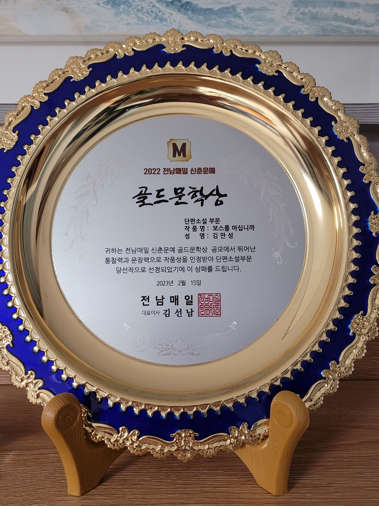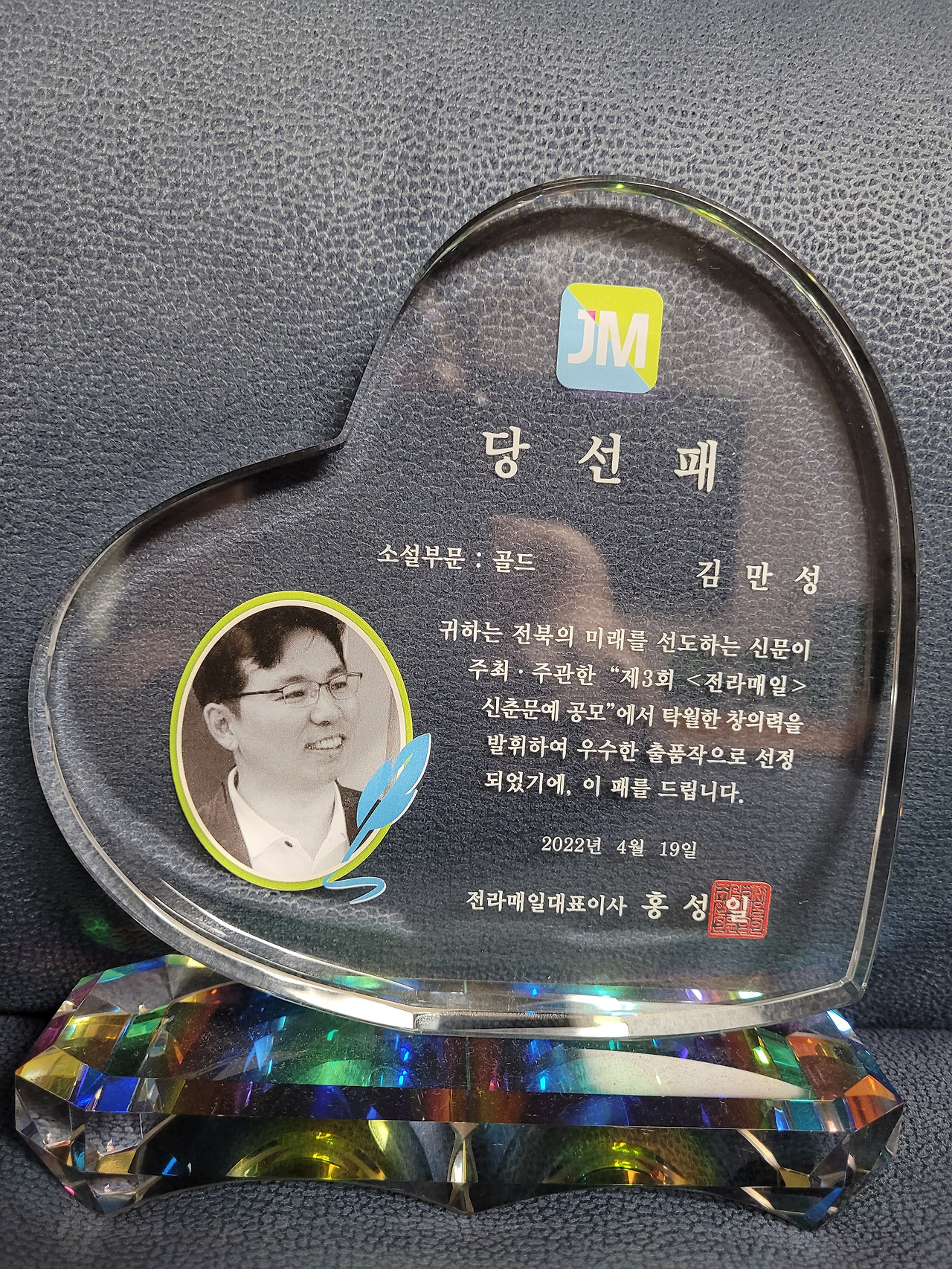 아래 사진은 전라매일과 전남매일의 등단패이다. 이렇게 시작했지만 지금부터는 등단패가 아니라 작품이 하나씩 책으로 더해지길 소망한다. 인생의 후반부를 향해 반환점을 돌아 뛰는 지금 나는 행복한 소설가의 길을 뚜벅뚜벅 걸어가려고 한다.