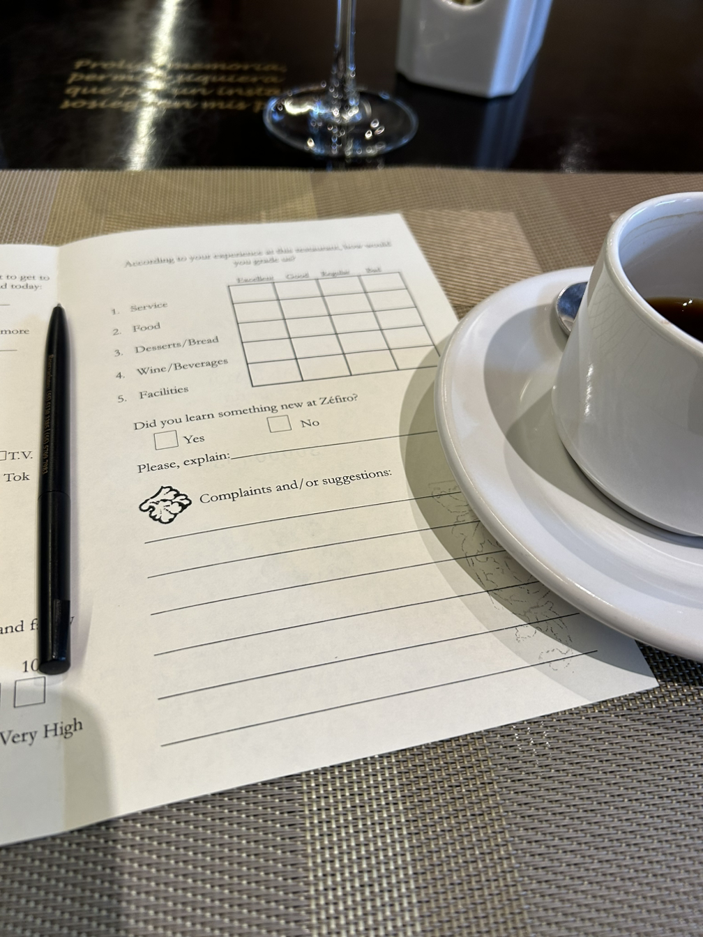 커피를 마시며 쉬고 있으니 매니저처럼 보이는 분이 와서 2장짜리 평가지를 주었습니다. 궁금해서 나가기 전에 한번 물어보았습니다.