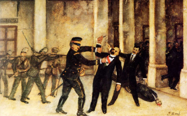 1913년 2월, 쿠데타를 계획한 우에르타 장군(Victoriano Huerta)은 헨리 레인 윌슨(Henry Lane Wilson) 미국 대사와 손잡고 마데로 대통령의 사임을 촉구했으나, 마데로는 명백한 주권침해라며 물러서지 않았습니다. 그러자 윌슨 대사는 당시 외무부 장관이었던 페드로 라스쿠라인(Pedro Lascurain)을 불러 "지금 마데로가 사임하지 않으면 국경에 전진 배치된 미군이 개입할 가능성이 있으며, 마데로의 목숨도 보장할 수 없다"라고 협박하였고, 마데로는 결국 신변의 위협을 느껴 사실상 강제로 사임하였습니다.