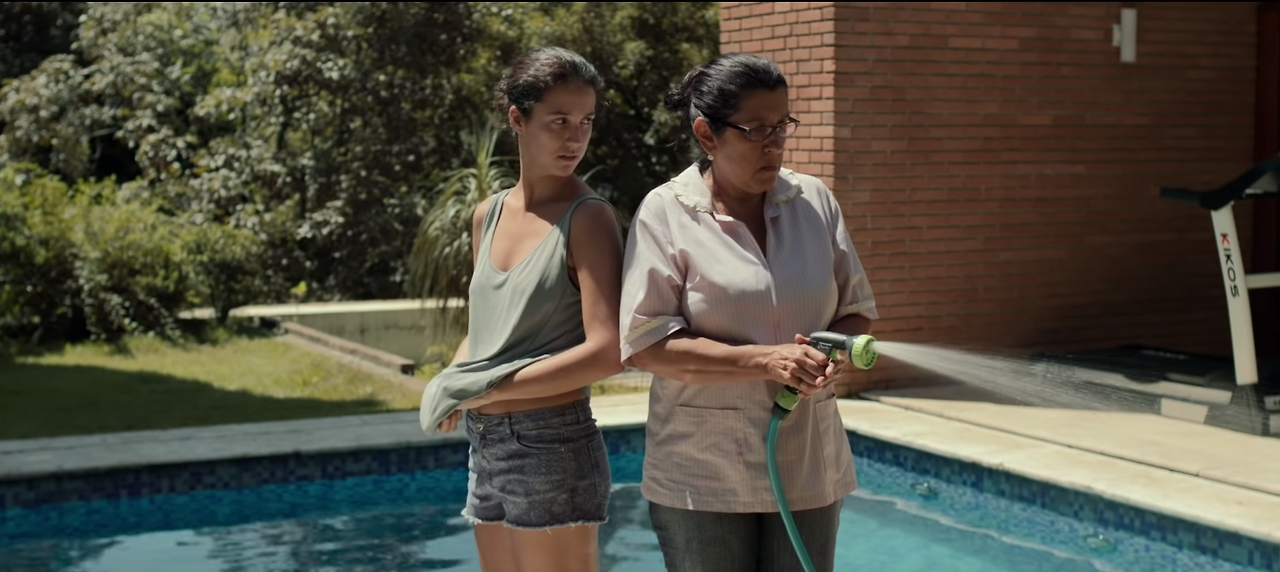 Val은 남몰래 감격에 겨워 딸에게 절대 들어가지 말라던 수영장 안에서 첨벙거리며 아이처럼 좋아합니다. 딸 덕분에, 그녀는 처음으로 자기 스스로 정해놓았던 삶의 방식을 조금씩 회의하게 됩니다. <기생충> 같은 소름끼치는 반전은 없지만, <Que Horas Ela Volta>는 도시와 시골, 가진 자와 가지지 못한 자, 주인과 하인의 대비를 통해 빈부격차가 극심한 브라질 사회에 질문을 던졌던 영화입니다.