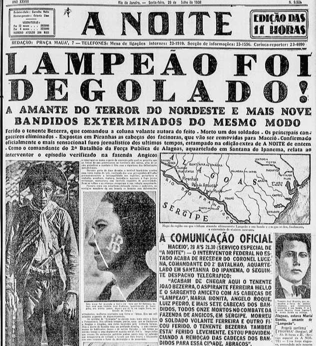 바르가스 대통령의 임기는 1938년 끝났어야 했지만, 1937년 11월 그는 갑자기 공산주의자들의 국가 전복 계획이 발각되었다며 비상사태를 선포하고 의회를 해산해 버렸습니다. Estado Novo('새나라') 시대의 시작이었습니다. 바르가스 정권은 브라질을 농경 사회에서 탈피시켜 공업화, 현대화된 중앙 집권적 국가로 발전시키려는 목표를 가지고 있었고, 그 과정에서 정부와 법을 우롱하는 북동부의 도적들은 반드시 척결되어야 할 대상이 되었습니다. 결정적으로, 같은 해 람피엉을 촬영한 다큐멘터리 영화가 버젓이 상영되고 있다는 소식이 바르가스 대통령의 귀에 들어갔습니다. 늘 대외 이미지에 관심이 많았던 람피엉은 전속 사진사 Benjamin Abraão를 시켜 사진과 영상을 남기도록 했는데 이것이 결국 각하의 심기를 건드리고 말았습니다. 그는 당장 람피엉의 머리통을 가져올 것을 주지사들에게 명령했습니다.