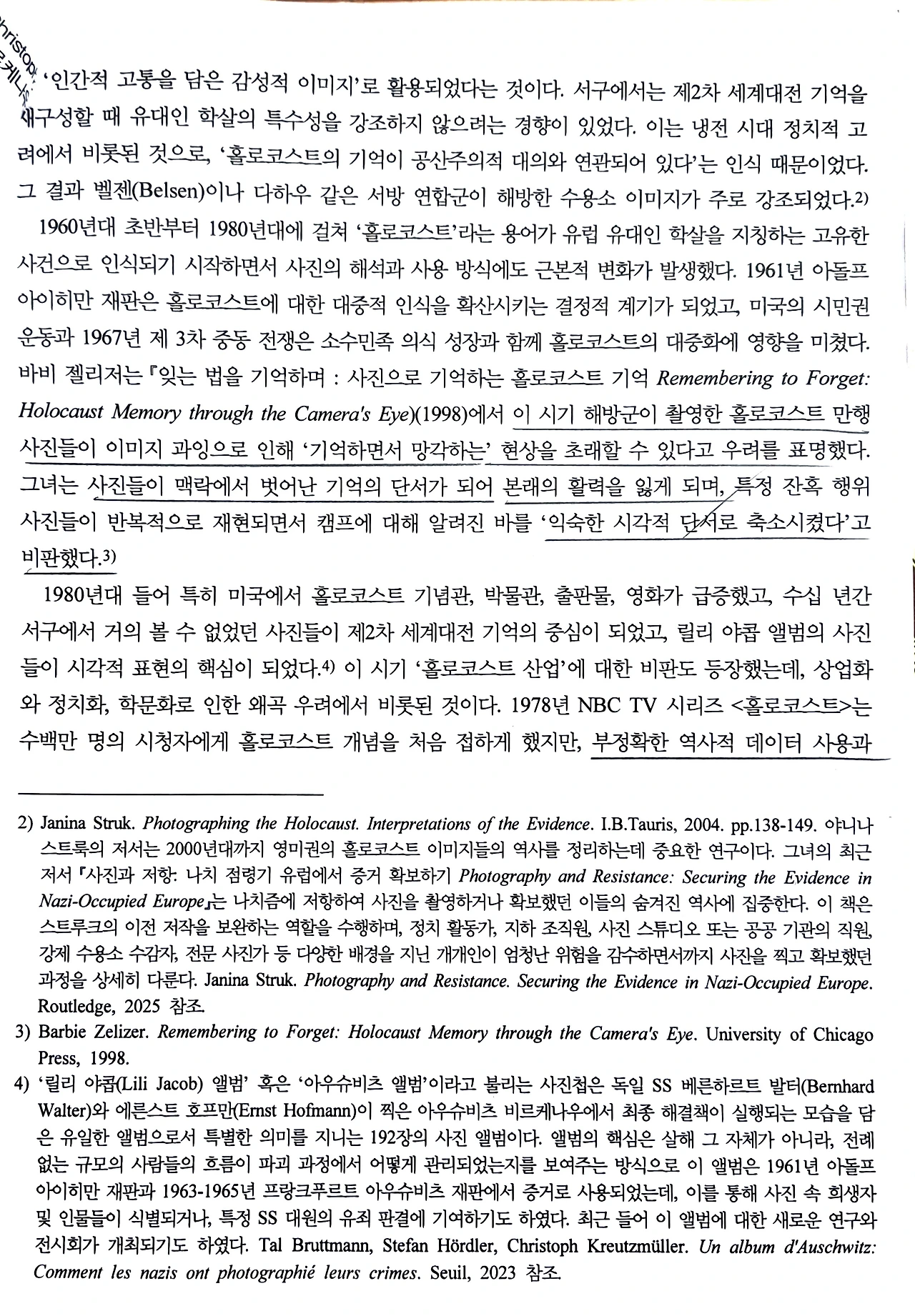 죽음과 소멸. 남들 앞에선 쉽사리 꺼내기 어려운 주제겠지만, 평소의 나는, 이러한 금기시된 주제에 깊은 관심을 가졌다. 이 논문은 홀로코스트라는 가장 극단적인 형태로 정면 돌파한다. 그래서 너무도 흥미로웠다.
