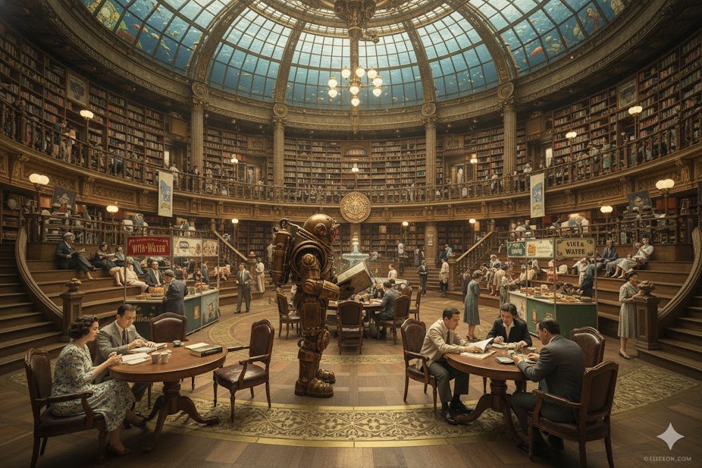 (목소리가 계속 들려온다)(주변에서 가족과 같이 온 어린아이가 목놓아 울고 있었다)(수근거리는 인파 속에서)이런, 너무 시끄럽단 말이지. 하. 다른 자리로 옮겨야되나. 여기 열람실이 제일 편하고 좋은데. 그나저나 왜 저렇게 우는 거야 진짜. 에휴.