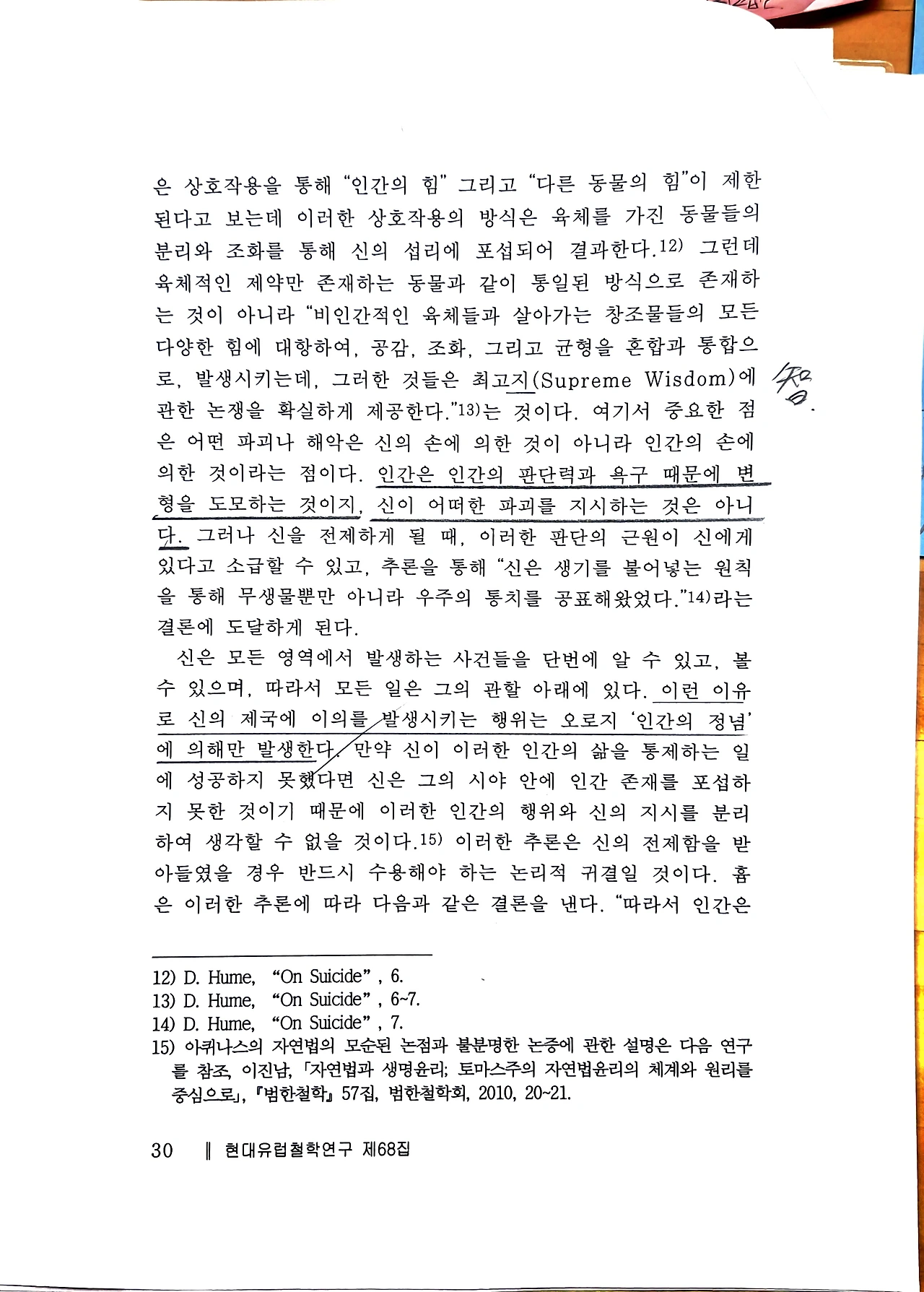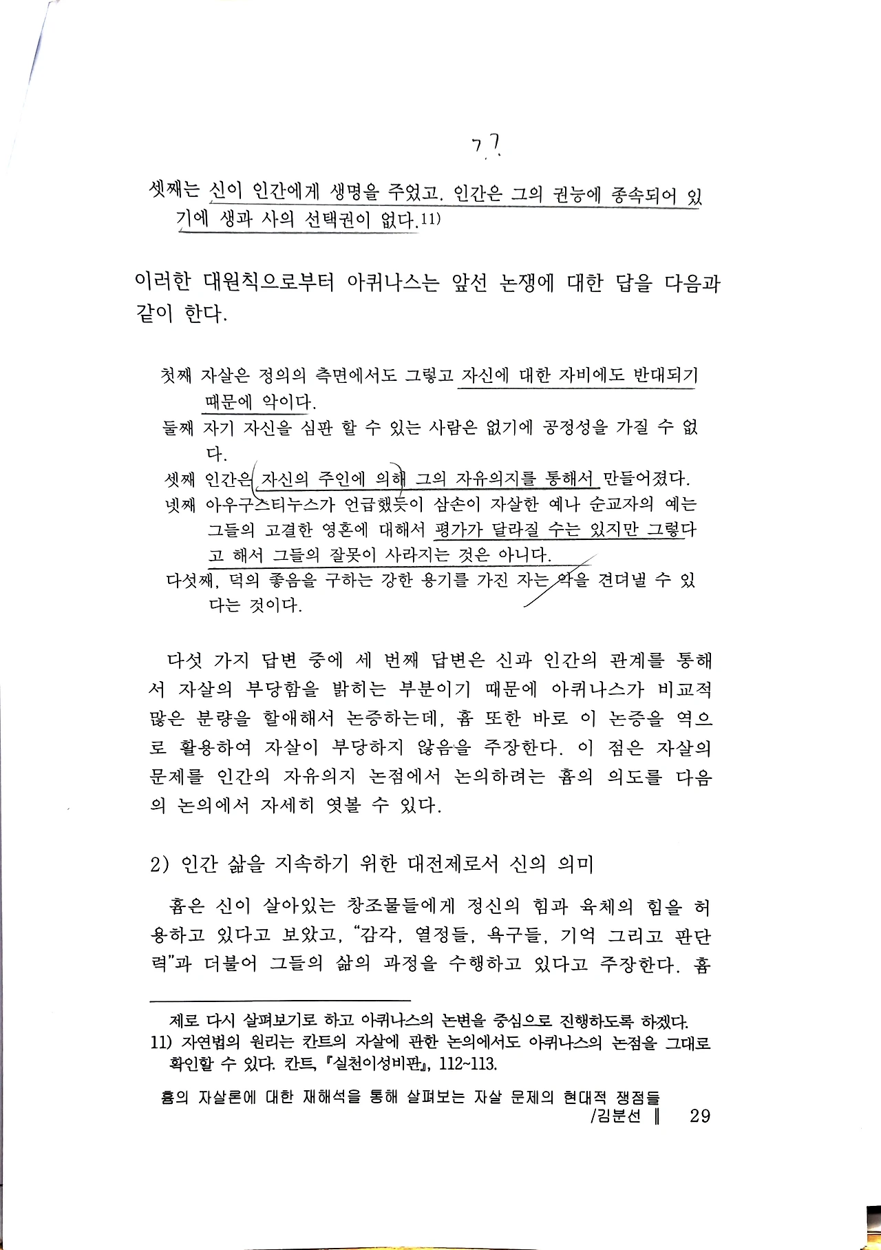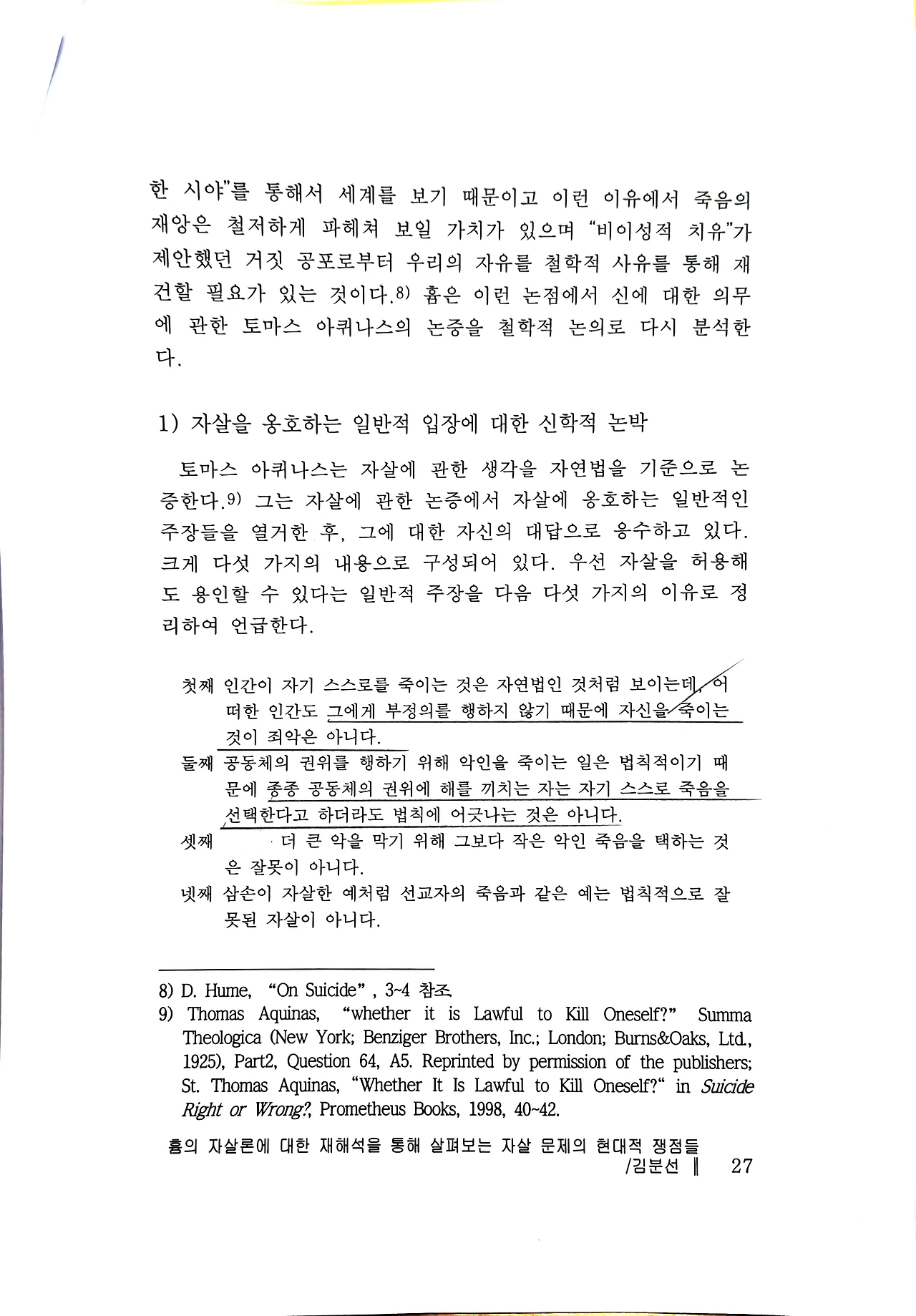 김분선, 《흄의 자살론에 대한 재해석을 통해 살펴보는 자살 문제의 현대적 쟁점들 》한국현대유럽철학회, 현대유럽철학연구 제68집, 2023, 23-60면