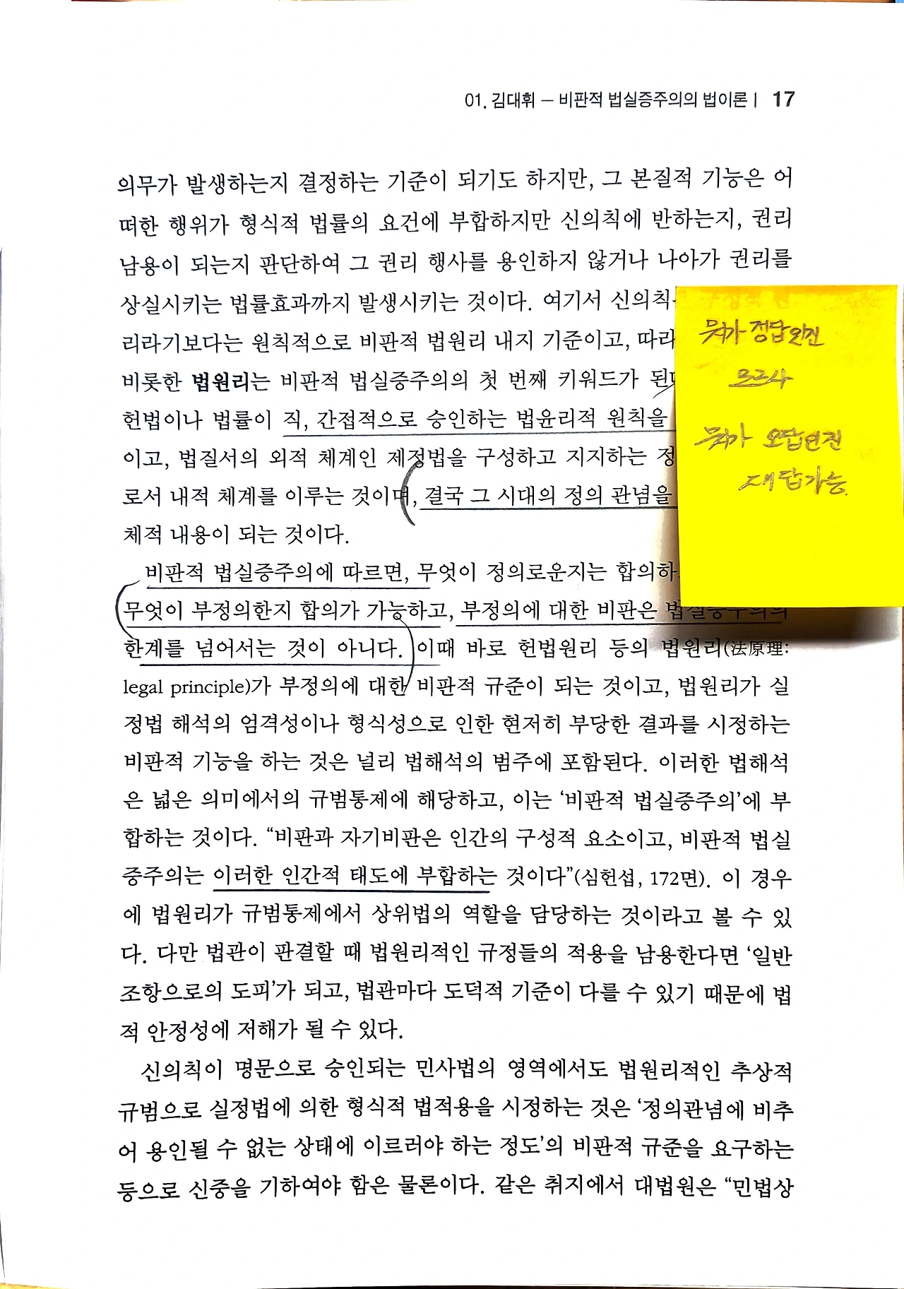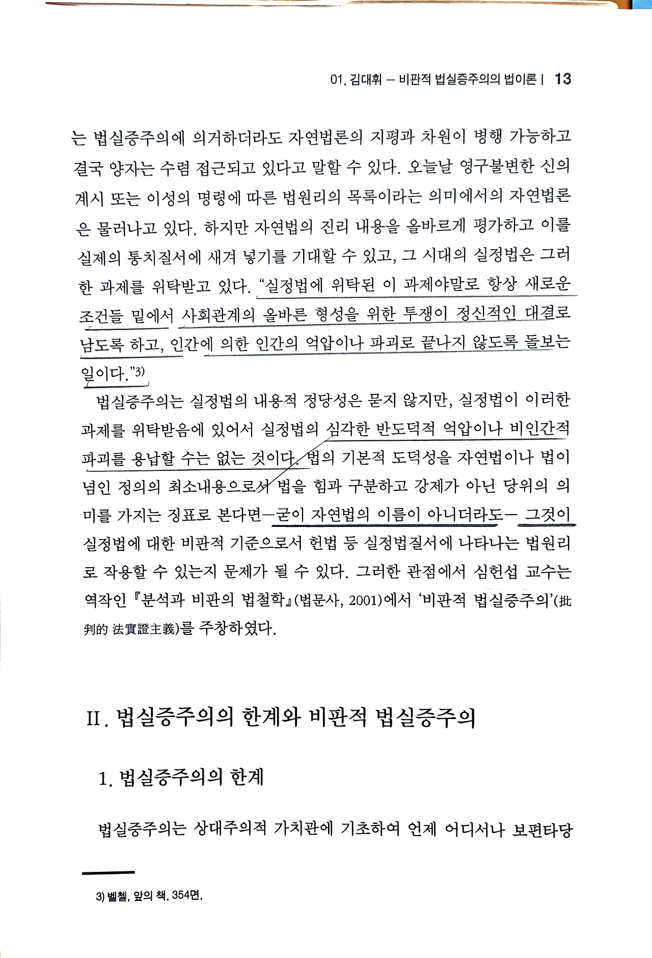 이를 위해, 첫째, 김대휘가 제시한 비판적 법실증주의의 핵심 내용, 특히 그 철학적 기반과 3대 핵심 기제를 정밀하게 요약 및 분석한다.