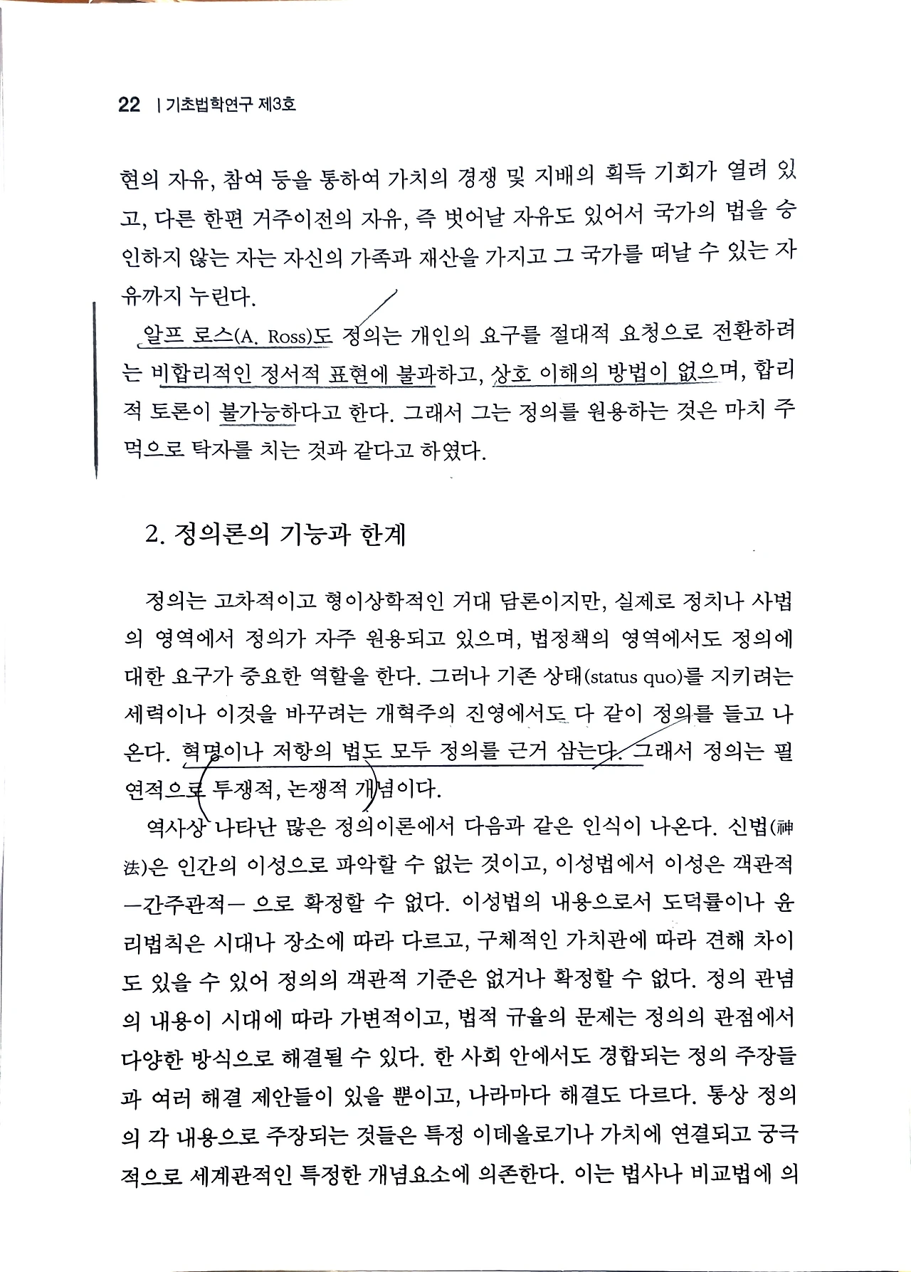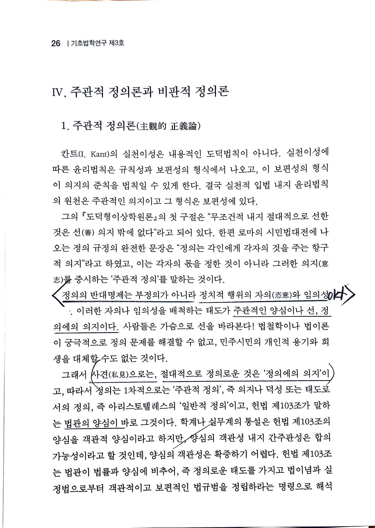 ["비판적" 법실증주의]가 법실증주의의 틀 내에 머무르면서도 '비판적'일 수 있는 철학적 근거는, 그것이 수용하는 정의론의 독특한 접근 방식에 있다.