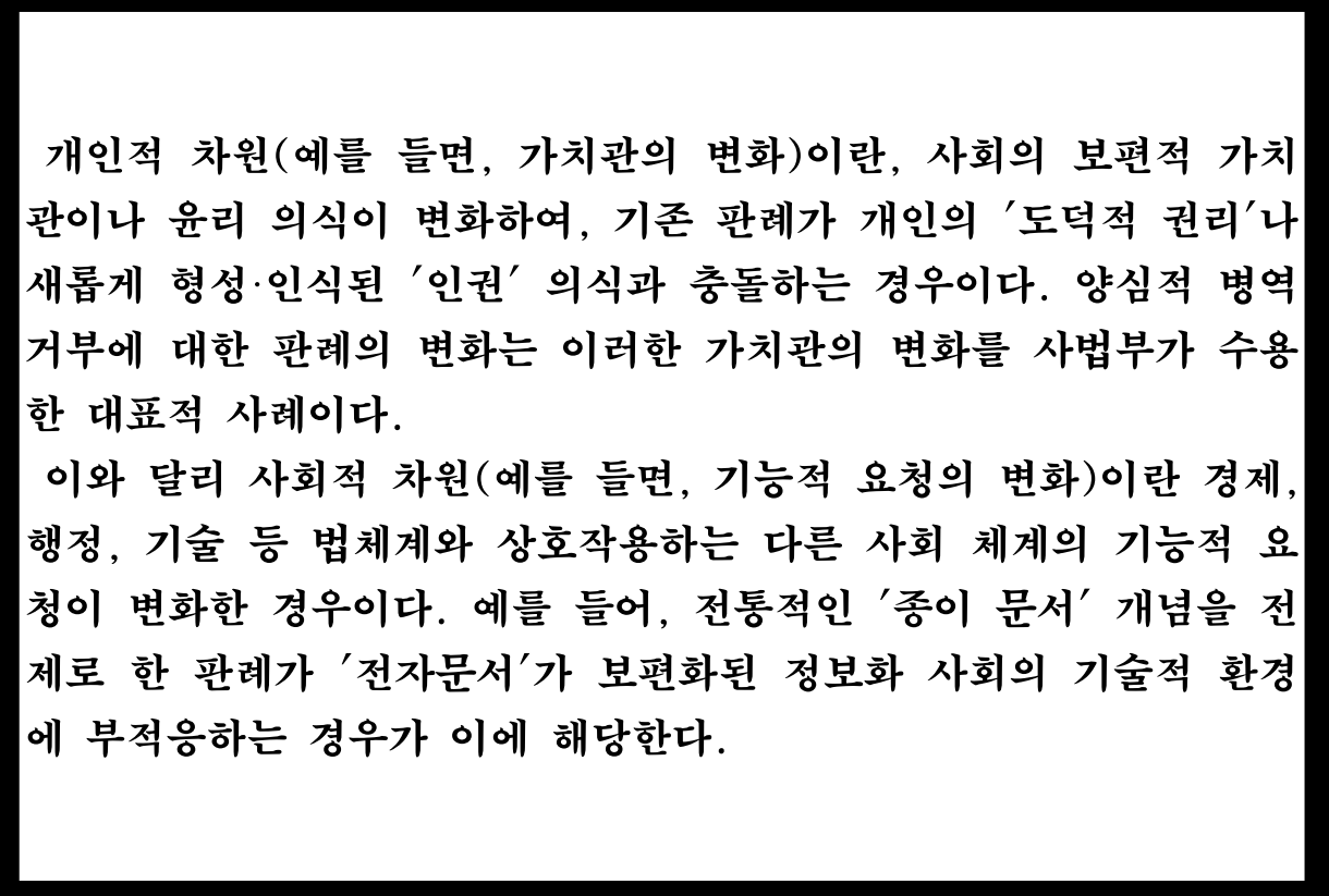 이러한 논리적 변용을 통해, 판례 변경은 '극단적 부정의'의 시정이라는 소극적 차원을 넘어, '시간의 흐름'에 따른 법의 적극적 적응이라는 차원으로 확장될 수 있는 방법론적 근거를 확보하게 된다.