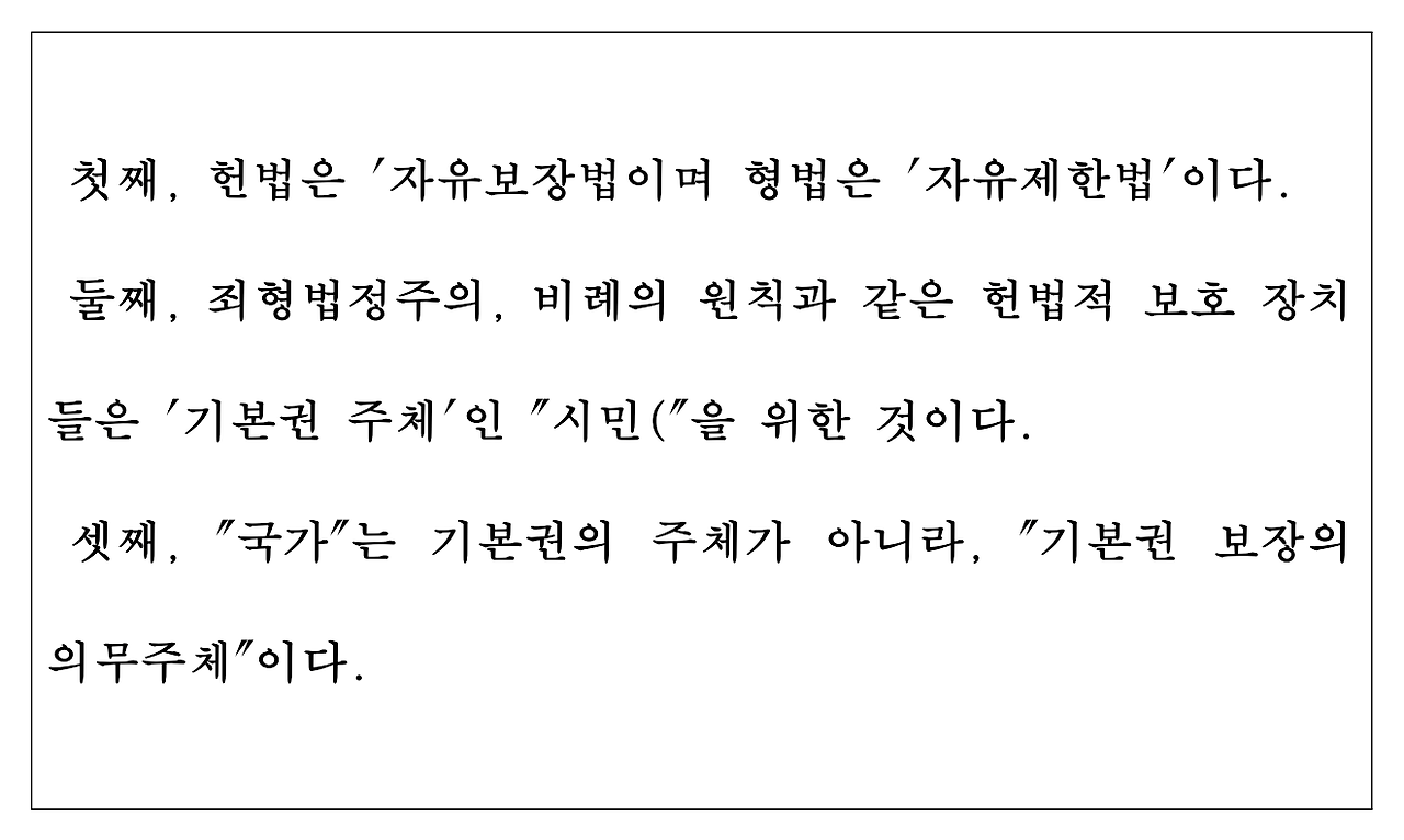 이 문제의 해결을 위해서는, 일전에 작성하였던, 김성돈이 제시한 이론에 주목할 필요가 있다. 직접적으로 논문에서 다루진 않았으나, 해당 이론을 차용한다면, 입법행위를 '국가폭력(Staatsgewalt)'으로 재개념화하는 패러다임의 전환을 기획할 수 있을 것이다. 김성돈이 제시한 이론의 논리는 정리하자면 다음과 같다.