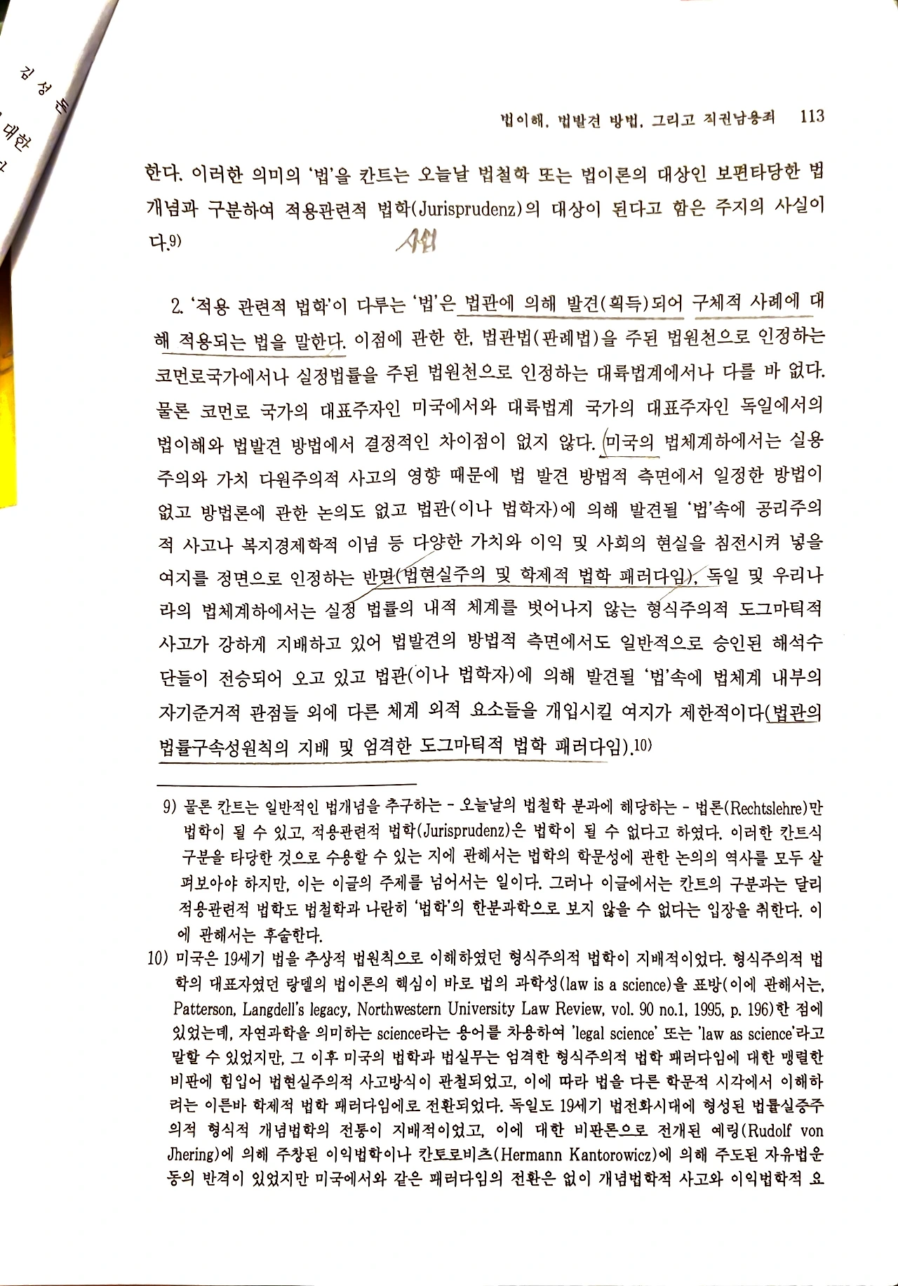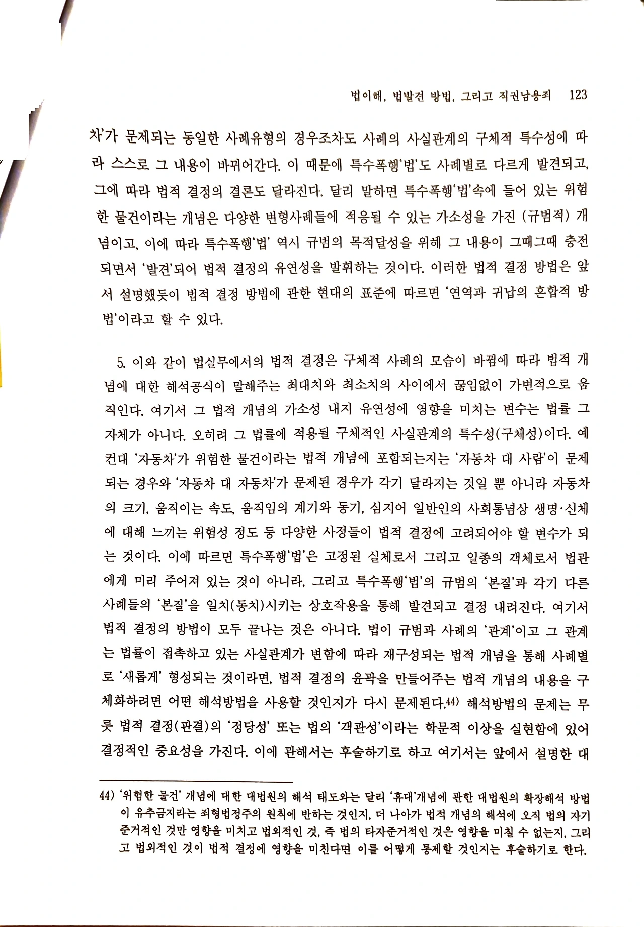 현대 한국의 사법실무, 특히 대법원 판례의 논리전개는 법학방법론의 관점에서 볼 때, 일관된 방법론을 결여한 채 두 개의 상반된 극단 사이를 진동하는 양상을 보이며 심각한 '방법론적 혼란(Methodenkonfusion)'을 드러내고 있다.
