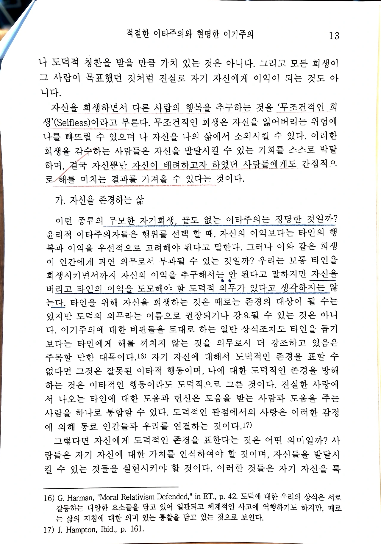 도덕적인 삶은 자신의 가치를 인식하고 자신을 발달시키는 것에서 시작된다. 자신의 삶에 대한 주인의식과 권위를 가진 사람만이 타인의 가치도 진정으로 존중할 수 있다. 자신이 하고 싶은 일, 되고 싶은 모습을 선택하고 노력하는 과정(자기 이익 추구)은 타인과 단절된 고립이 아니라, 타인과 더 풍요로운 관계를 맺기 위한 토대가 된다.