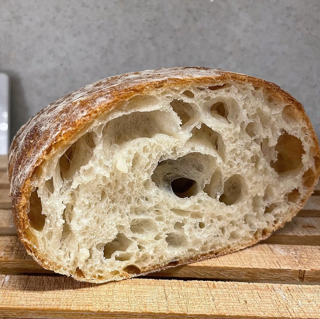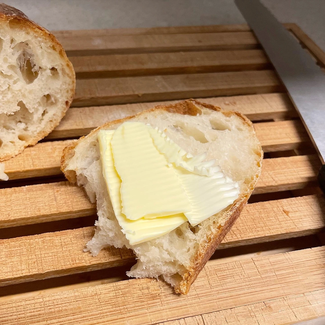 밀가루, 물, 소금, 이스트 만으로 풍성한 맛과 질감이 만들어졌다. 거칠지만 촉촉하고 고소하면서도 산미가 느껴진다. 치아바타는 충분한 시간만 들이면 원래 이렇게 만들어지는 빵인 것이다. 효모가 빵에 남겨놓은 멋진 결과물에 나는 무염버터를 슬쩍 얹어본다.