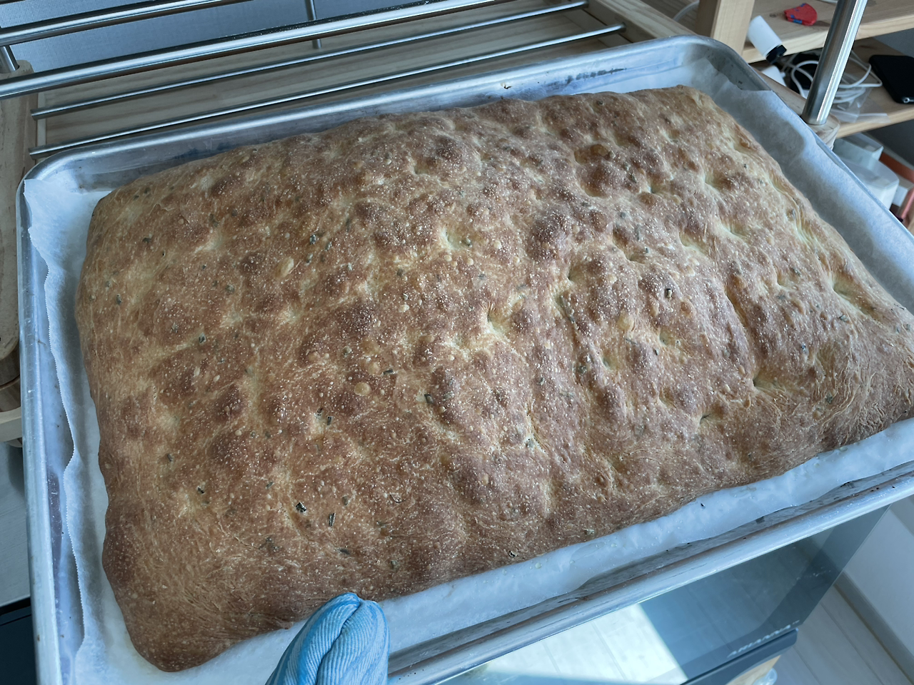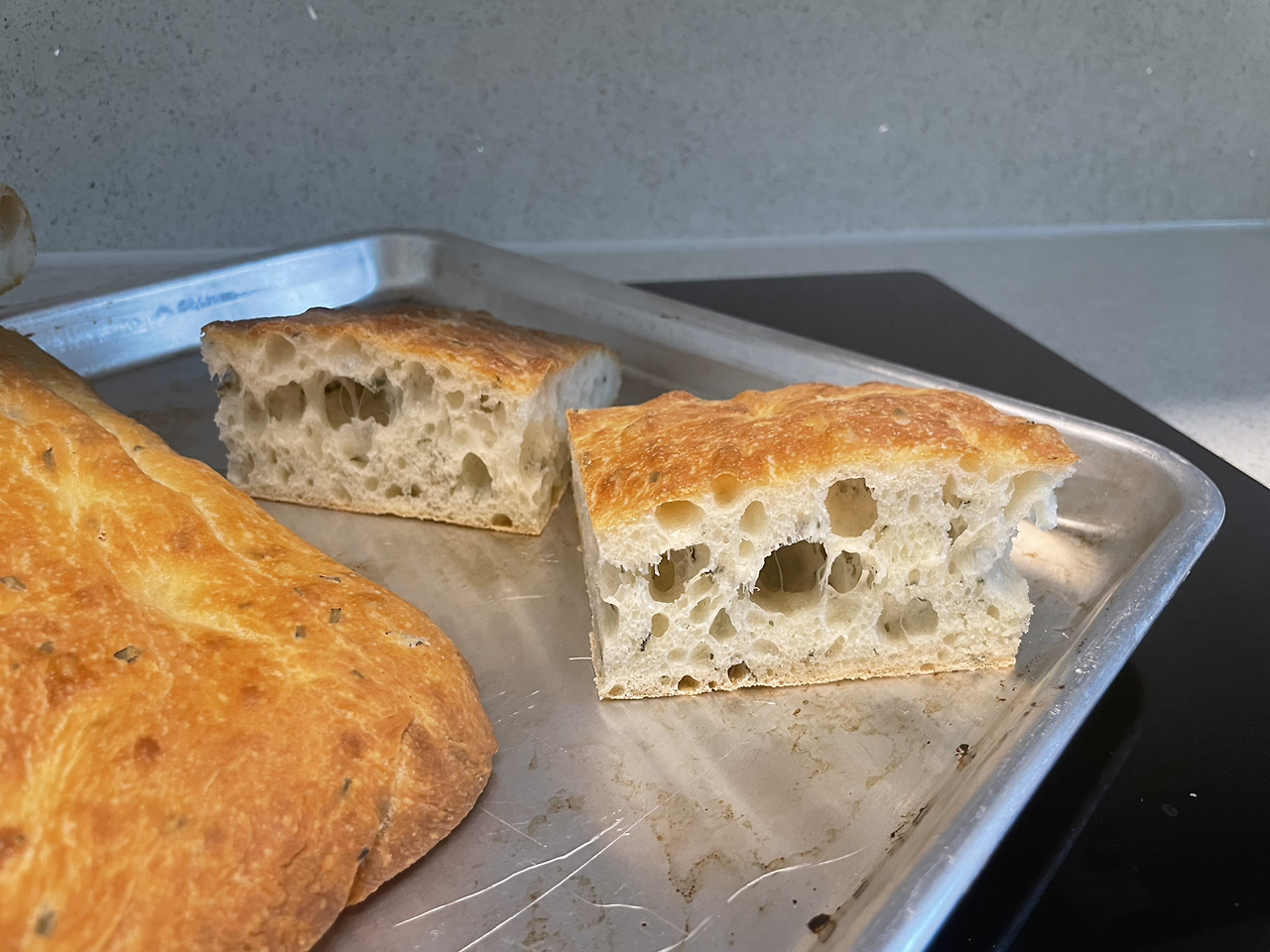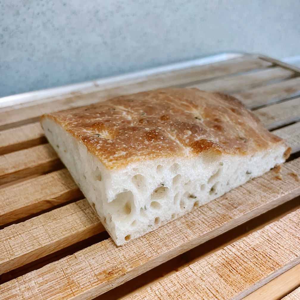 앞에서 언급한 균일성 이외의 측면에서는 상당히 만족스러운 결과물이었다. 빵 표면에 생긴 수없이 많은 잔기포, 공간을 가득 채우는 올리브와 로즈메리 향, 겉바속촉의 질감까지. 게다가 이 활용도 높은 만능빵은 단독으로 즐겨도, 메인 요리에 곁들여도, 샌드위치나 피자를 만들어도 식사의 만족도를 극대화시켜 주는 마력을 지닌다. 앞으로 며칠, 혹은 몇 주간 포카치아를 어떻게 더 다양하고 맛있게 먹을지 실컷 고민해 봐야겠다.