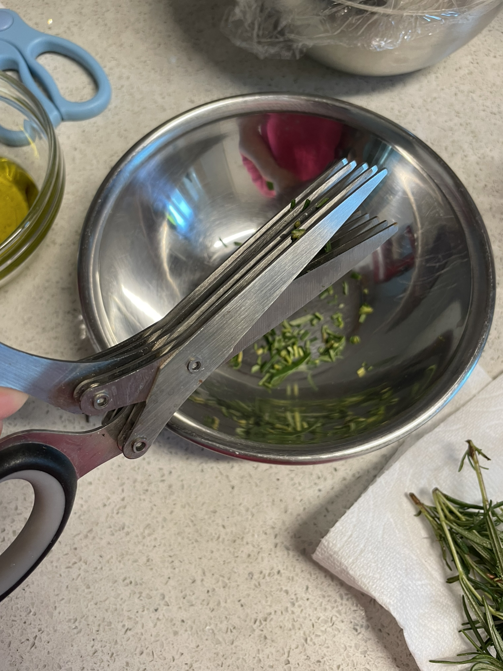 미국에서 지낼 당시 쇼핑몰에서 다중 칼날 허브가위(multi- blade herb scissors)를 구매할 때는 사실 김이나 파를 잘게 자르려는 지극히 한국인스러운 목적이었다(솔직히 한국에서 로즈메리, 세이지 같은 생 허브를 다질 일이 얼마나 있겠나). 그런데 막상 김과 파를 잘라보니 기름기와 수분 때문인지 칼날 사이에 재료가 들러붙어서 가위질이 잘 되지 않는 것이다. 결국 이 가위는 로즈메리를 다진 오늘까지 무려 7년 동안이나 서랍 안에서 잠자야 했다.