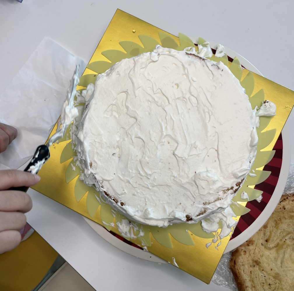케이크가 구워지는 내내 오븐 앞에서 발을 동동 구르기는 했지만 반죽은 생각보다 잘 부풀어 올랐기에 나는 다시 성공의 희망을 품고 완전히 식은 케이크를 빵칼로 3등분해 보았다. 그런데 케이크 안이 엉망이었다. 균일하게 섞이기 않은 반죽이 서로 다른 질감으로 익어서 기하학적인 무늬를 형성했고 가운데 부분은 떡진 것처럼 심하게 축축하고 물컹했다. 오븐 안에서는 잘 부풀어 올랐다고 생각했는데 식히고 나니 가운데 바닥 부분이 움푹 들어간 채 꺼진 모습이었다(다 구워진 시폰 케이크는 형태 유지를 위해 팬을 뒤집은 채로 식히기 때문). 아이싱으로 어느 정도 커버가 된다고 해도 살릴 수 있는 부분이 많지 않았다.
