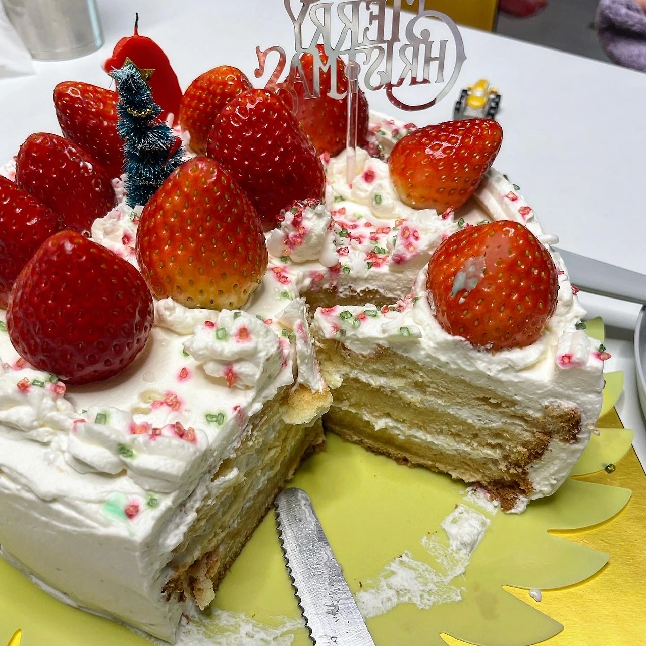 아이를 시켜 케이크 재료보다 비싼 딸기를 올리고 케이크 픽과 초를 꽂았다. 마무리로 크리스마스 컬러의 스프링클까지 뿌리니 오, 제법 그럴싸했다. 이제야 진짜 크리스마스 같았다. 케이크형 인간들은 이러한 재미와 성취감으로 케이크를 만들겠지? 그렇게 기분을 전환하고 아이와 함께 케이크 한 조각을 맛보았다. 아이가 말없이 한 조각을 모두 먹어 치우기에 그래도 못 먹을 정도는 아닌가 했는데, 그 이후 며칠이 지나도 더 달라는 요청이 없다. 남은 케이크는 아직도 밀폐용기에 담겨 냉장고 맨 위칸에 진열되어 있다.