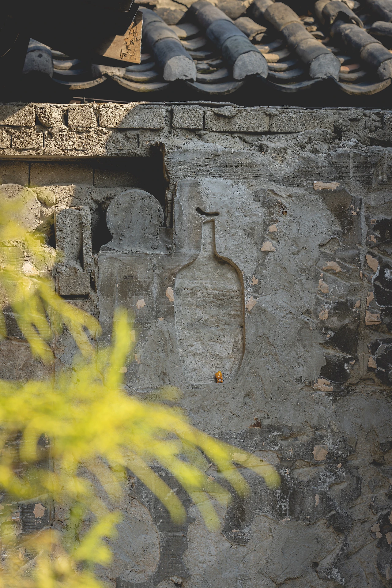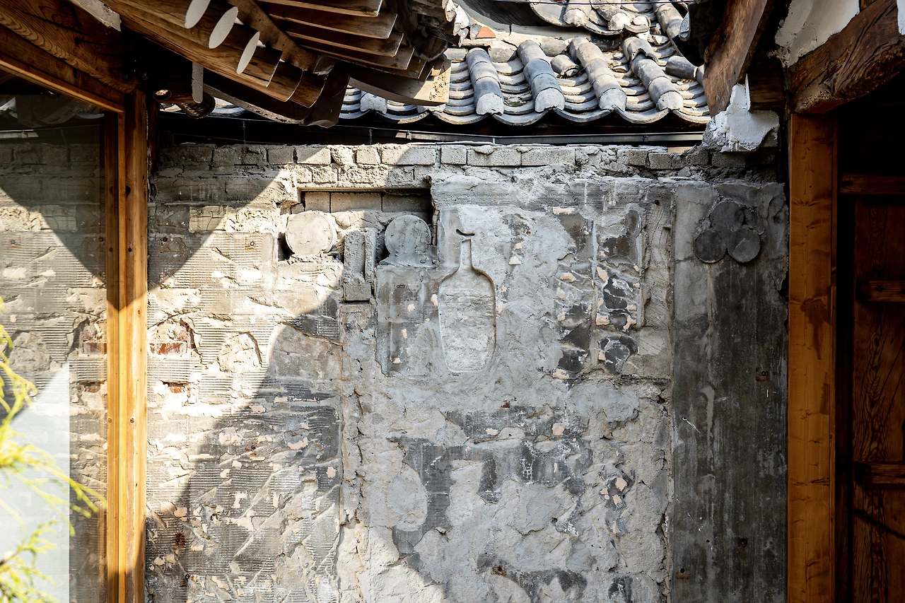 이번 한옥점은 확실히 각을 잡고 만들었구나 싶었어요. 그리고 그간 저건 어디에 있는 거지 하는 궁금증을 유발했었던 블루보틀 모양의 음각 돌벽 또한 이 곳에서 만날 수 있었네요.
