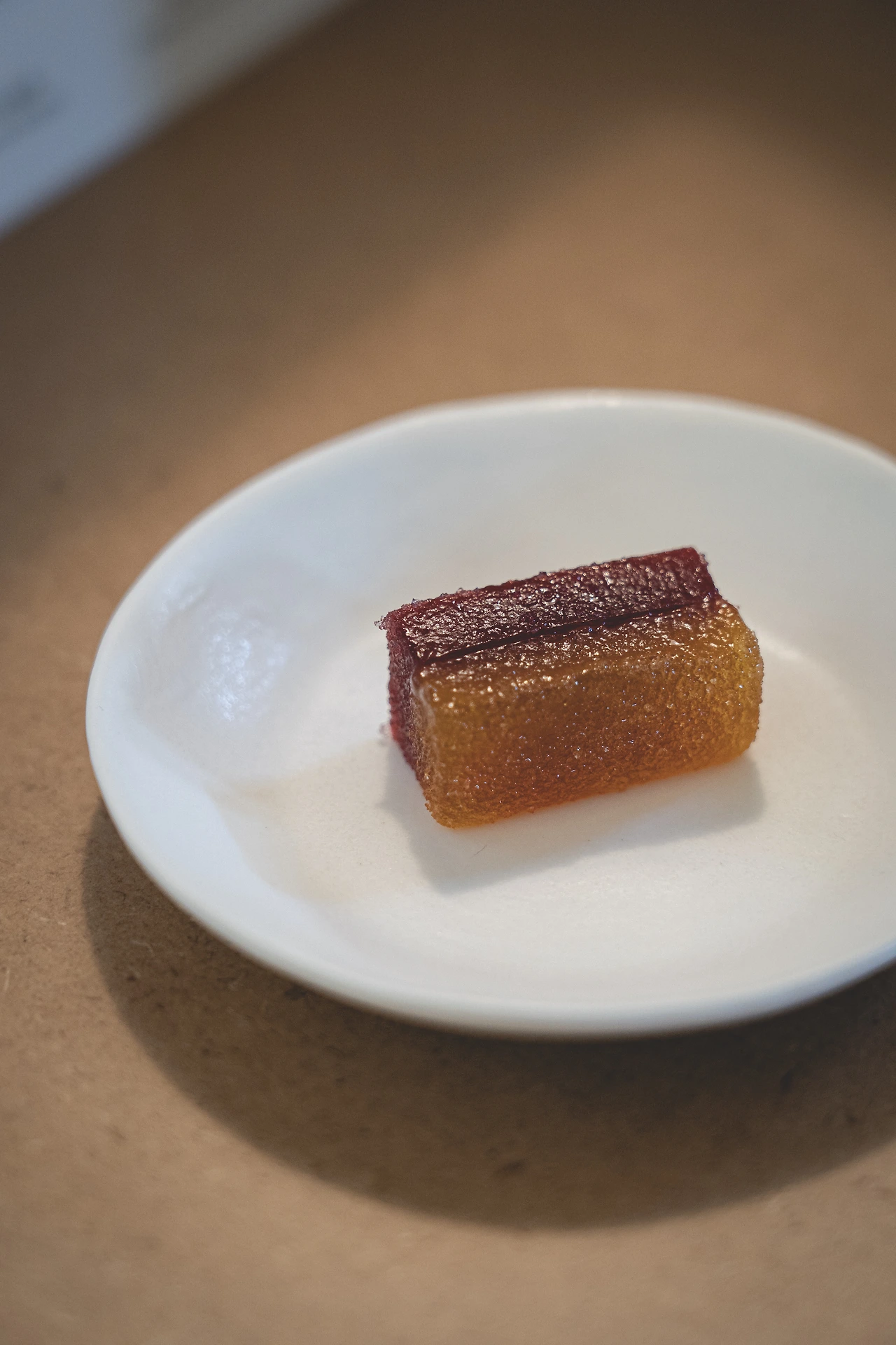 다른 블루보틀 지점과의 차이점 중 가장 두드러진다고 할 수가 있는 게 바로 이 서비스. 음료와 디저트를 직접 가져다주시고, 그에 대한 설명과 블루보틀 한옥에 대한 이야기를 들려주시는데 생각보다 듣는 재미가 좋으니 일행과의 수다를 잠시 멈추고 경청해보자. 그리고 음식이 준비되는 동안 애피타이저로 주시는 과일 젤리(파트 드 후류이)도 즐기면서 말이지. 달달하고 상큼한 맛으로 입맛을 올려주는 요긴한 녀석.