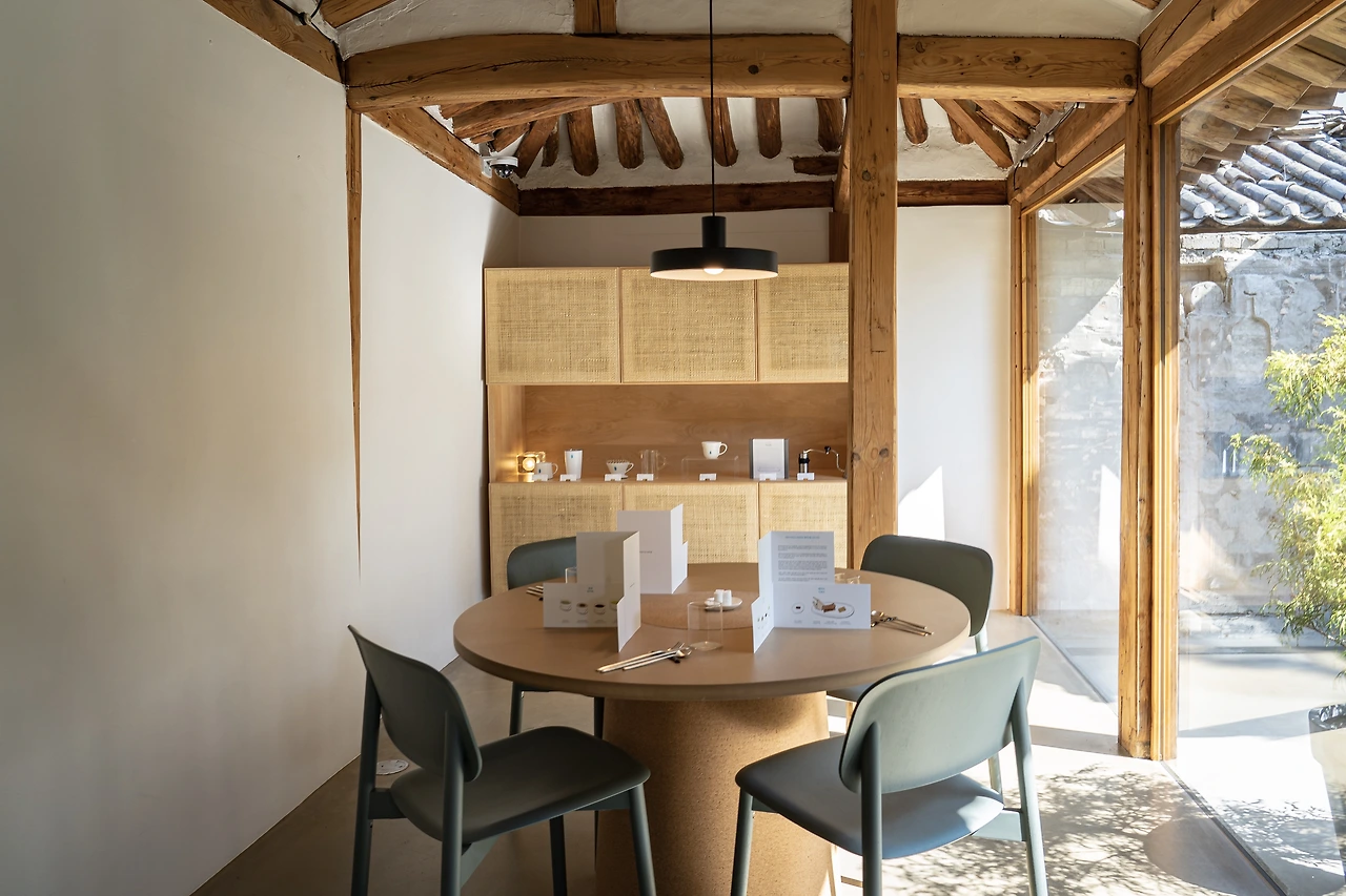 사실 블루보틀이 처음 성수에 들어왔을 때만 해도, 한국적인 요소가 너무 부족한 것이 아닌가 하는 생각을 한 적이 있었다. 오픈 기념으로 복주머니에 떡을 나누어주기는 했지만 그것은 결국 일회성인 요소였었고, 기껏해야 에코백 정도에서만 한국의 정취를 찾아볼 수가 있을 뿐이었으니 말이다. 그런데 이번 삼청 한옥을 다녀오며 그런 생각이 많이 바뀌었다. 블루보틀이 신경을 많이 썼구나 하는 흔적이 여기저기 보였다.
