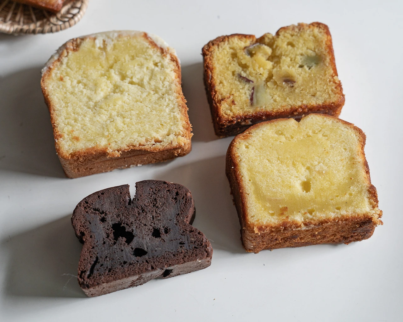 “와 조각에 3천 원이나 해?” 시간이 지나면서 다양한 빵집을 가게 되고 다양한 파운드케이크를 먹어보게 되었다. 다행스럽게도 이 취향은 변하지 않았다. 그리고 조금 유명하다는 빵집에 파운드케이크는 보통 하나씩 있었다. 제법 큰 제과점에선 케이크를 파는 자리에 고급진 포장을 곁들여 꽤 비싼 가격에 팔고 있었고, (나는 기회를 노려 한두 번 사본 적이 있다.) 개인 빵집에선 조각 단위로 썰어 팔고는 했다. 옛날 빵집의 파운드케이크만 먹던 나에게 사실 고급진 포장의 파운드케이크나 조각 단위의 파운드케이크는 쉽게 익숙해지지가 않았다. 마치 동네 호떡을 호텔에서 사 먹는 그런 기분이라고 해야 할까? “와 이렇게 다양한 파운드케이크라니” 그래도 도통 궁금하다 보니 안 먹어볼 수가 없었다. 세상엔 내가 아는 것보다 더 많은 파운드케이크가 존재했다. 각자 다 맛도 식감도 달랐다. 내가 좋아하는 타입의 파운드케이크는 절대로 가벼워서는 안 되고, 포슬 하고 바스러지는 질감이어도 괜찮지만 그래도 너무 푸석하기보다는 어느 정도 수분감이 있는 파운드여야 했다. 그리고 속 재료가 들어간 경우에는 많아야 했다. 감질나게 적다거나 그 맛이 약할 때는 역시나 재미가 없었다.