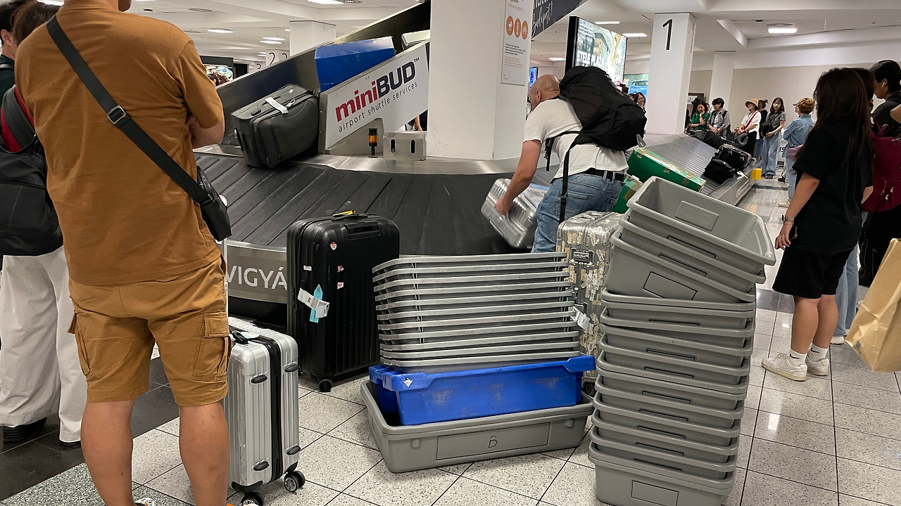 계속 돌아다니는 빈 바구니 때문에 캐리어가 내려오지 않자 바구니를 정리하기 시작한 남성. 한껏 친절해지기로 한 나도 옆에서 동참했다. 힘이 부족해서 별 도움이 안 되었지만, 대신 자신 있는 큰 목소리로 thank you라고 했다. 친절해줘서 고마워요. 제게도 친절할 기회를 줘서 고맙고요!