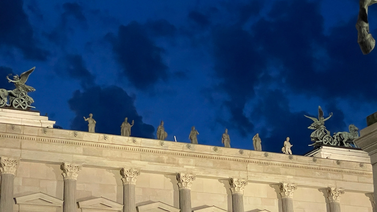 해가 진 후에는 궁전을 더 깊게 바라보게 된다. 큰 이유는 없고 눈이 부시지 않아서 그렇다. 낮에는 몰랐는데 밤이 되니 동상들이 이렇게 많았구나 싶었다. 그나저나 이 무거운 건물을 머리로 지탱하고 계시다니, 고생이 많으셔요.