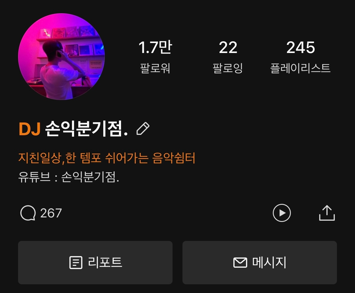 멜론 파워 DJ와 음악 유튜버로 활동한 지 벌써 4년 차가 되었다. 그동안 수많은 플레이리스트를 만들면서 내가 사랑하는 음악을 더 많은 사람들과 나눌 수 있다는 사실이 정말 행복했다. 특히, 내가 선곡한 곡들에 공감해 주고 숨은 명곡들을 발견하며 감동했다는 이야기를 들을 때마다 보람과 행복을 느끼곤 한다. 음악이 누군가의 하루를 더 특별하게 만들어 줄 수 있다는 것, 그 자체로 내게는 큰 의미가 된다.