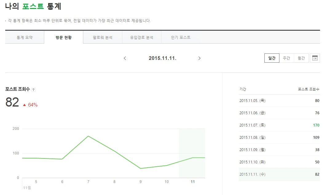 포스트: 11/9일 38회 --> 10일 50회 --> 11일 82회 --> 12일 114회