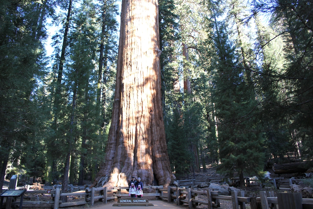 가족과 함께 자동차로 캘리포니아 산호세에서 그랜드 캐년으로 이동하는 도중에 세쿼이아 국립공원 내의 숙소에서 1박을 하기로 했다. 공원에 들어서 세쿼이아 대원시림의 거대함에 입을 다물 수가 없었다. 온몸에는 소름이 돋았다. 이제껏 살면서 한 번도 느껴보지 못했던 규모였다. 특히 세계에서 가장 부피가 크고 무게가 무겁다는 제너럴 셔먼 트리를 보니 인간은 정말 자연 앞에서는 보잘 것 없는 존재라는 생각이 들었다. 제너럴 셔먼 트리는 키가 83미터에 무게가 무려 1,385톤이나 나간다. 나이는 2,200살이고 나무의 밑동은 직경이 11미터나 된다.