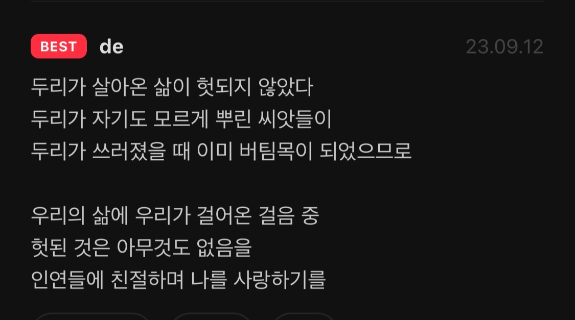 다음 웹툰 <도토리 문화센터> 마지막 화 베스트 댓글 중 *by de