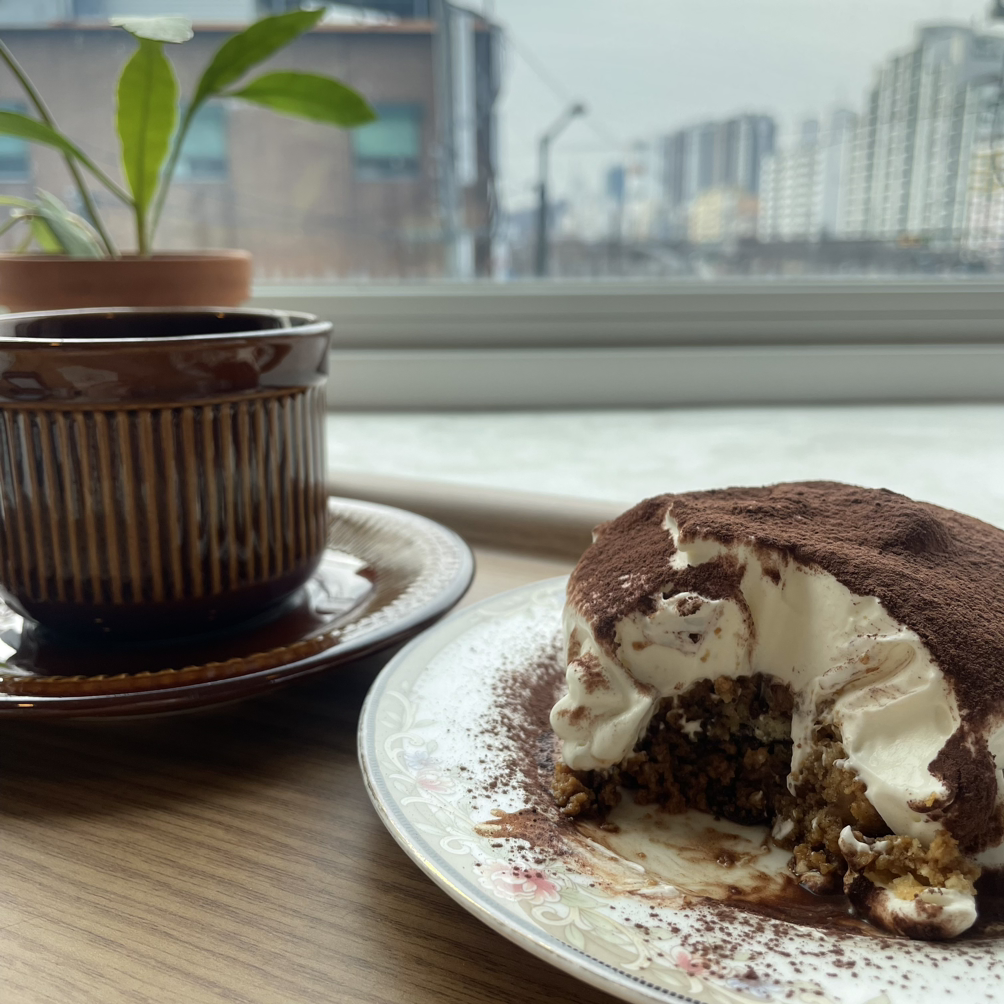 융드립 커피와 티라미수. 커피맛은 그럭저럭 괜찮았는데 티라미수는 반 이상을 남겼다. 빵 대신 초코마카다미아 쿠키를 쓴 것 같은데 크림과의 조화가 너무 무겁고 달아서 내 입맛에 안 맞았다.