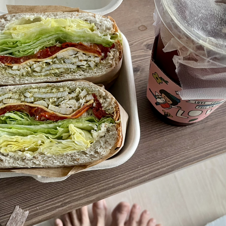 아아로 간단한 해장. 내가 서울에 올 때마다 항상 다음 날 첫 아침은 오빠랑 나 둘 다 groggy하게 일어나 겔겔 거리거나 같이 해장하거나 뭐 그런 모습인데, 암튼 촐촐해하는 나를 위해 오빠야가 샌드위치도 시켜줬다. 반반 나눠먹으려고 했는데 오빠는 안 먹어서 다음 날 아침으로 내가 다 먹음.