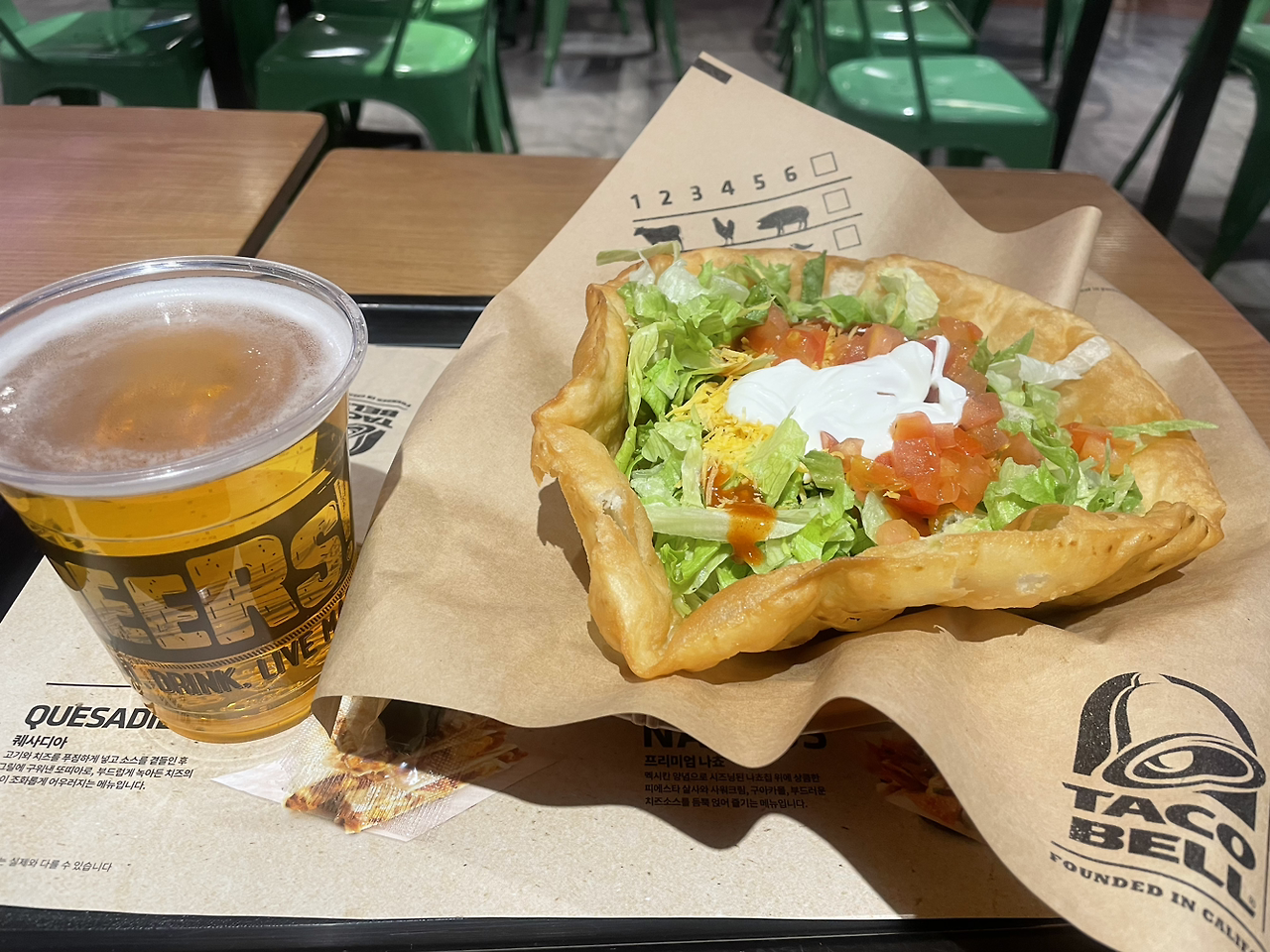 현대백화점에서 수희 선물도 살 겸 신촌이 첫 번째 행선지가 되었다. 걸어서 15분이면 연주회장 도착할 수 있기도 하고. 선물 사고 가는 길에 타코벨이 있길래 반가워서 저녁 겸 따꼬와 맥주 한잔 곁들였다. 원래 음악감상엔 술이그등.