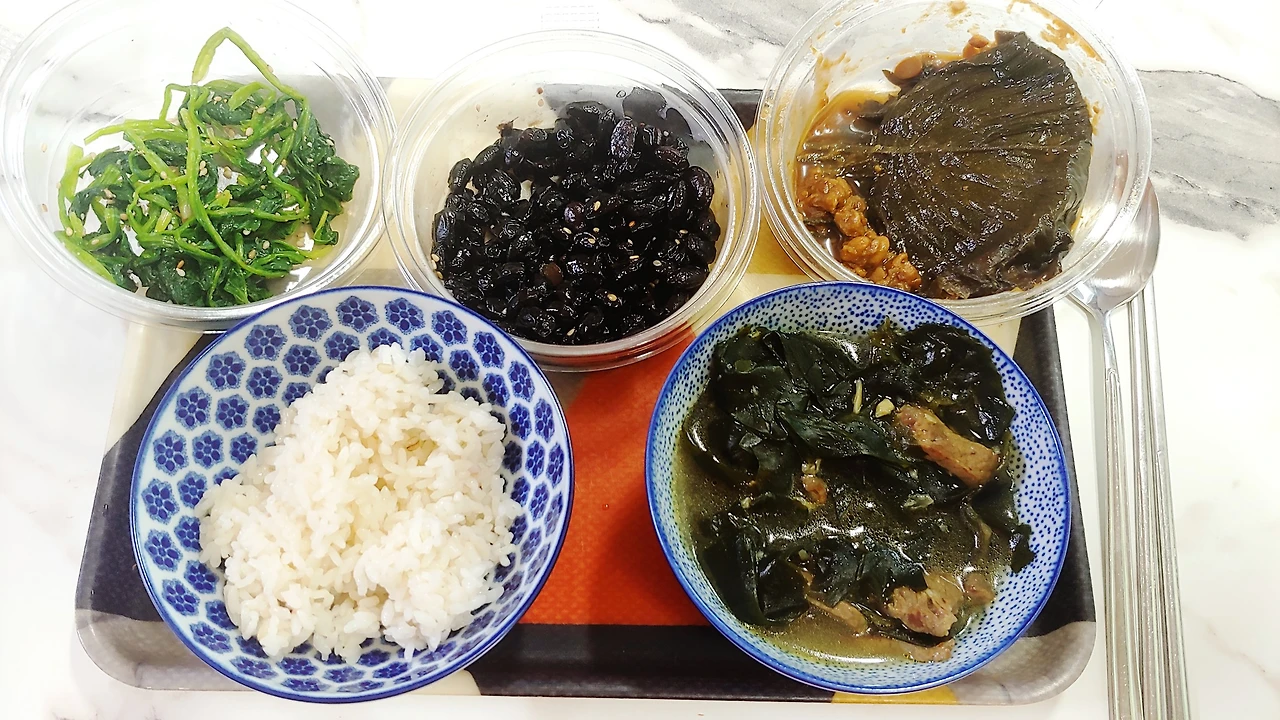 1. 남편이 티 안 나게 일어나(모른척 하려고 누워있느라 애썼지만ㅎ) 새벽녘부터 사부작사부작 하더니 식탁에 앉은 내 앞으로, (무슨 ‘오다 주웠다’ 코스프렌지) “미역국 정식이야~” 라는 짧은 한마디와 함께 이쁜 쟁반을 밀었다. 이게 왠 호사냐! 결혼 11년차만에 남편이 내 바람을 제대로 충족시켜주고 있는 현장이었다. 예전엔 3분 미역국도 감사하게 받았는데, 오늘은 제법 한우를 넣어 오래 끓인 전문 소고기 미역국! 축하한다는 말도, 사랑한다는 말도 없지만 난 이걸로 되었다!