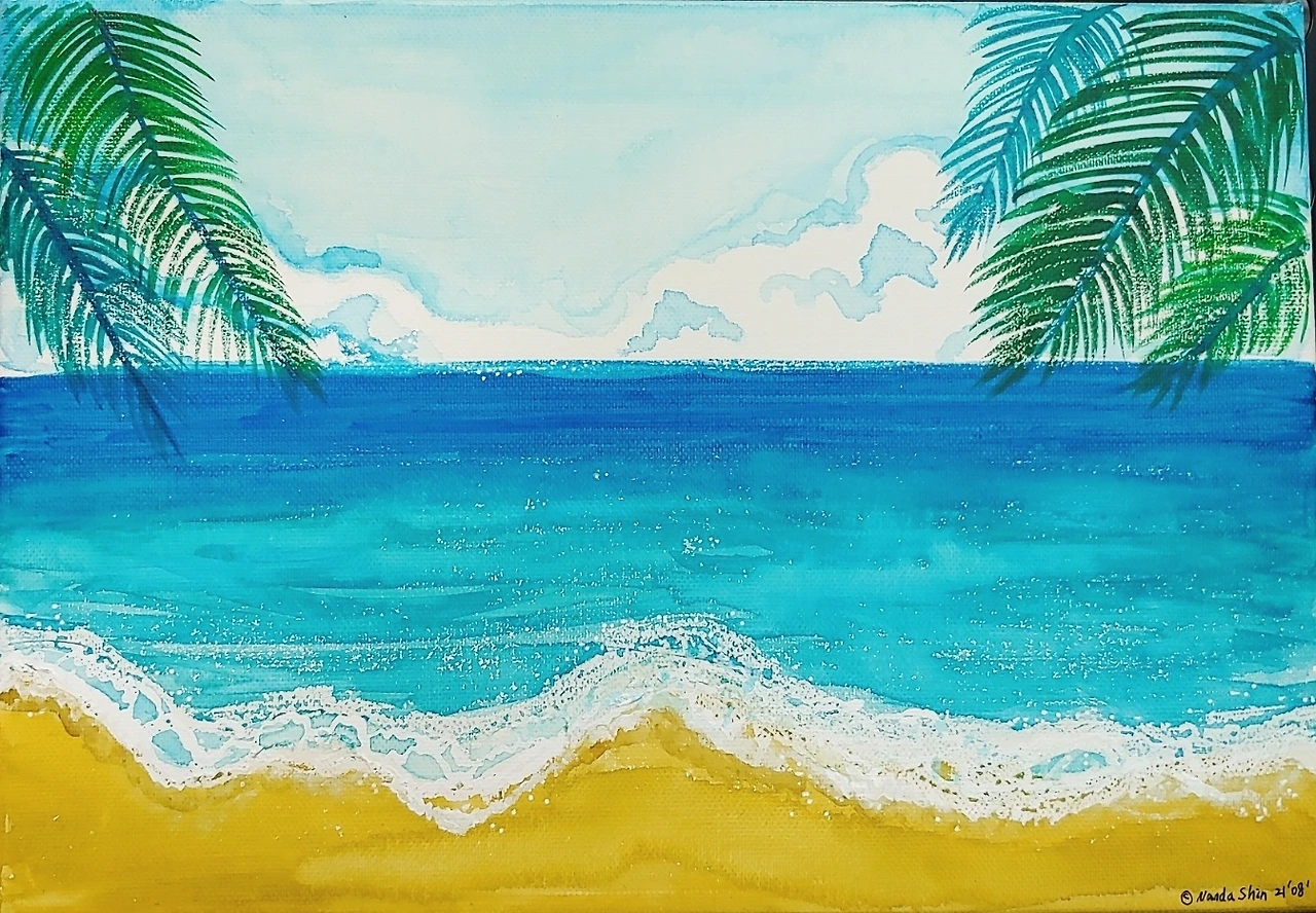 그래도 다 마른? 푸른 바다를 보니 마음이 뻥 뚫린다. 당장이라도 뛰어들고 싶은 바다 그림이 완성됐다.