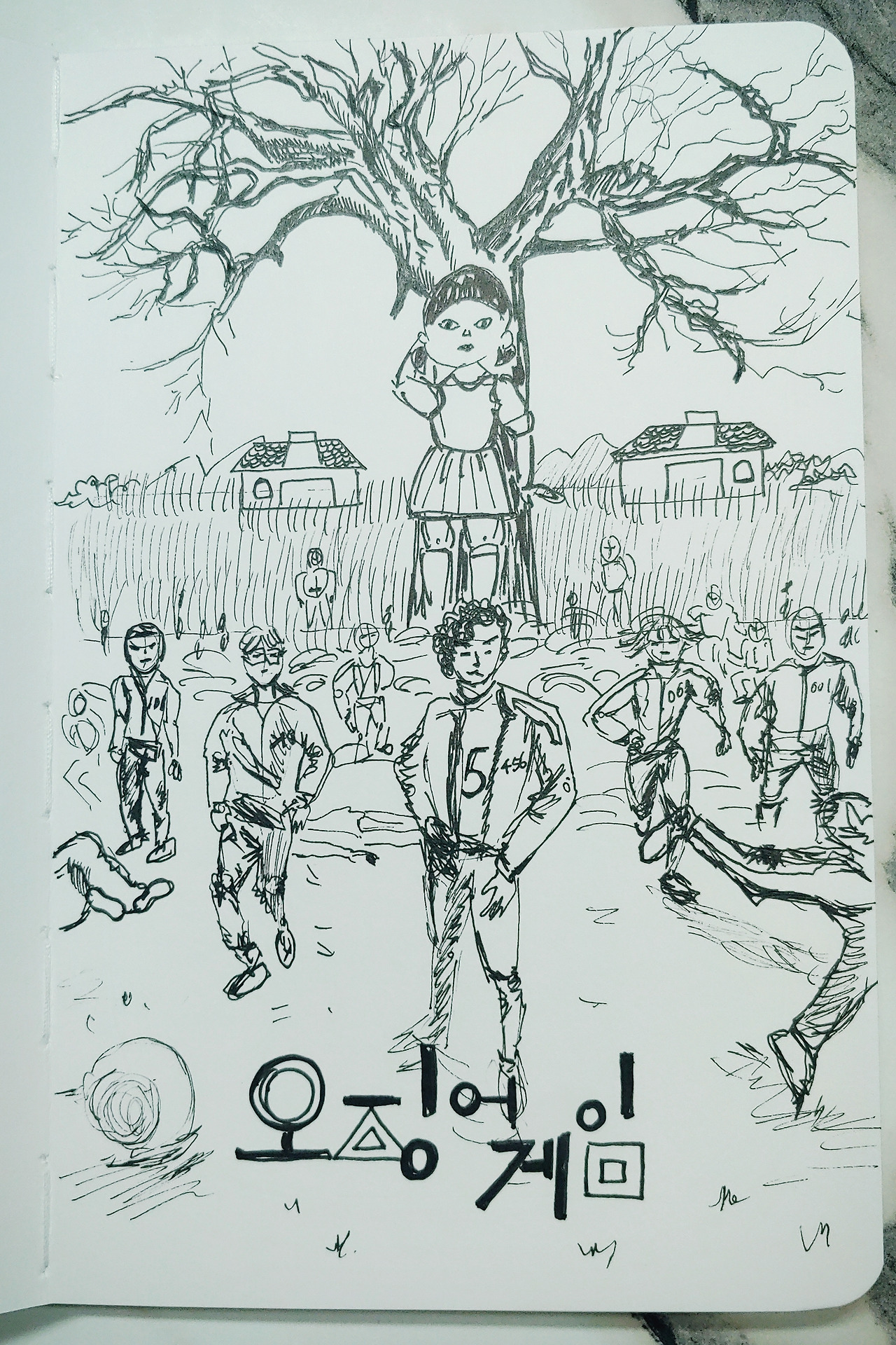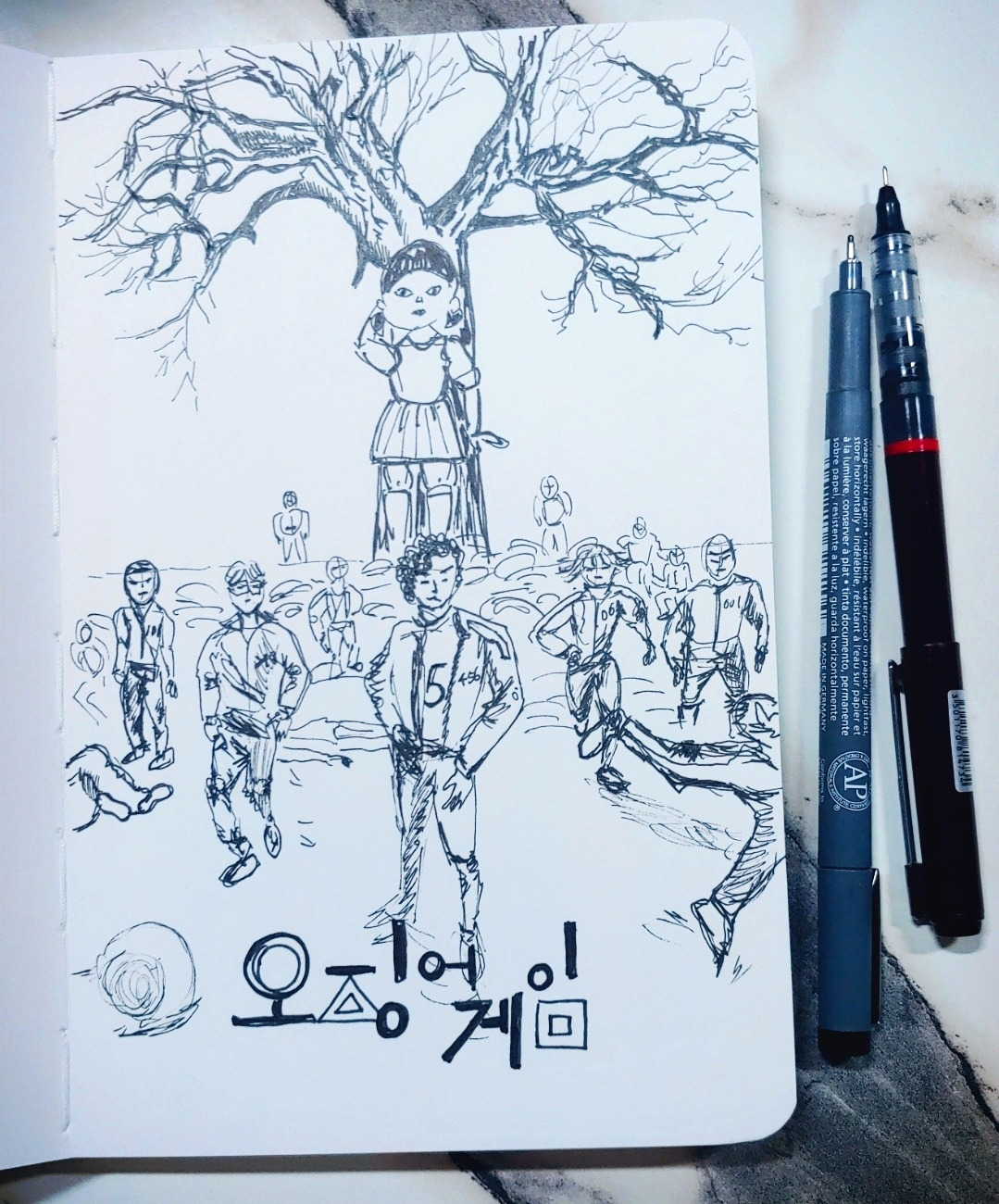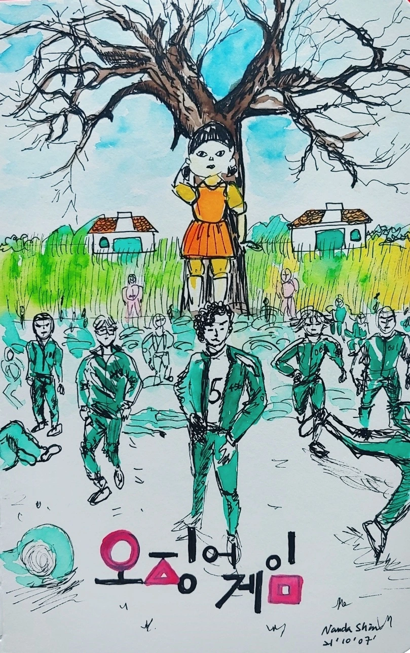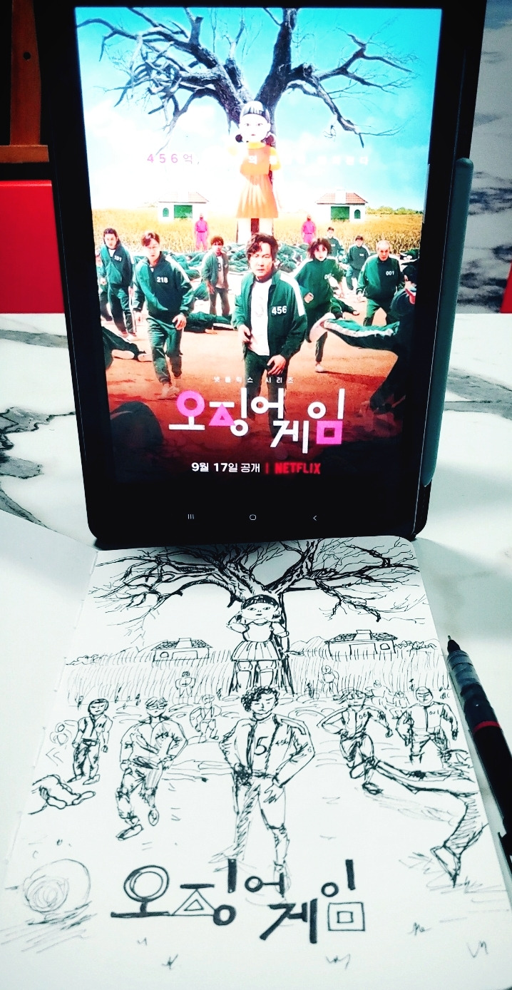 '아.. 아니 「오징어게임」 장면을 그릴까?'