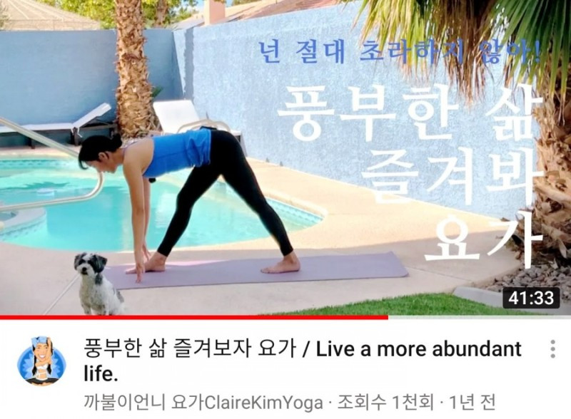 영상 제목들은 다 다르고 힙하지만, 아직 요린이(요가 어린이)인 나에겐 하나같이 다 비슷하면서도 어려운 동작들이다. 가장 많이 익숙해진 키워드는 다운 월 페이싱 독(downward facing dog), 하이 플랭크(high plank), 전사 자세 그리고 inhale코로(들숨) & exhale입으로(날숨)등이다.