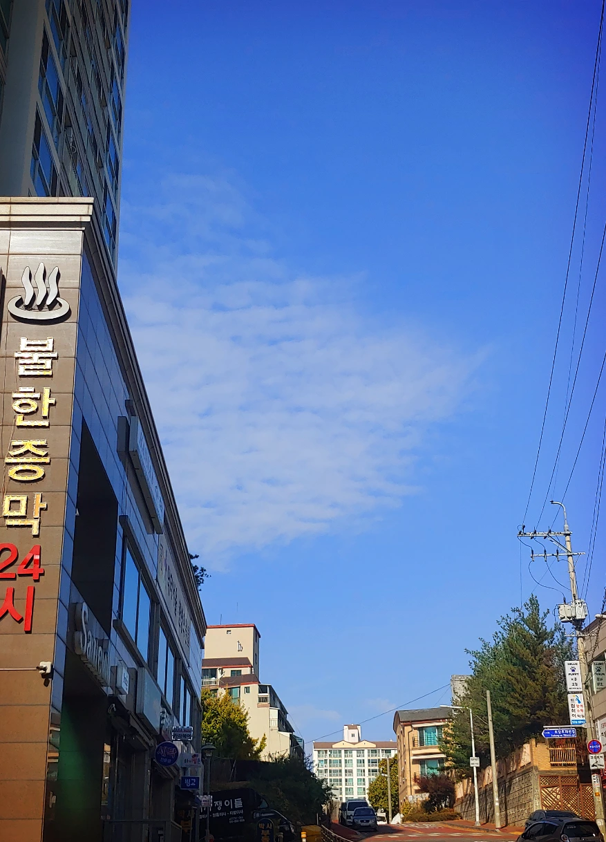 자신의 열정을 빠알갛게 불태우고 장렬히 전사한 낙엽들의 바스락 소리를 들으며, 건조하지만 상쾌한 아침 바람, 어디까지 가봤니 외치는 듯 높게 올라간 파아란 하늘.