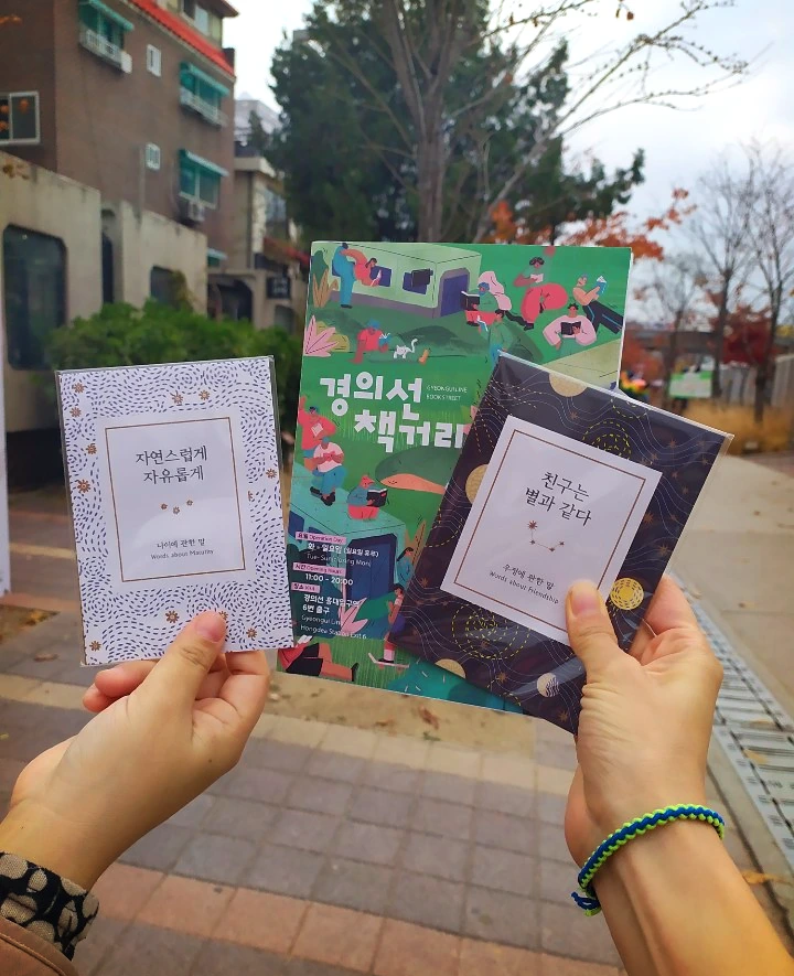고즈넉한 #경의선책거리 를 함께 걸으며, 가는 시간을 붙잡아 하나하나 펼쳐보았다. 서로 마주보자, 우리의 시간이 다시 중학교 때로 돌아갔다. 친구는 내가 모르던 내 중학교 때의 모습을 기억하고 있었다. 나는 친구가 잊고 있었던 그의 해사함을 성대모사와 함께 끄집어 내어주었다.