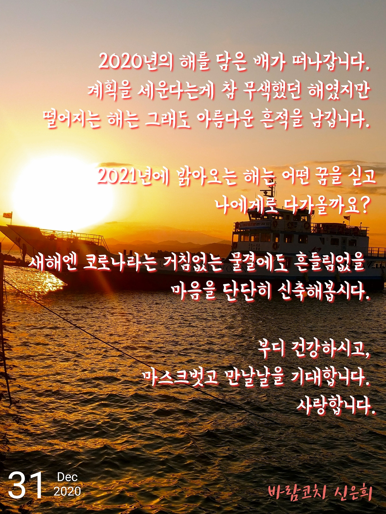 - 어려운 때였는데 나를 기억하고 찾아주시는 분이 많아 너무 감사한 한 해였다. 특히 큰 프로젝트에 참여하거나 기획, 론칭을 하며 많은걸 배우고 성장할 수 있었다. - 3-4월 진행됐던 코로나19극복을 위한 심리코칭서비스단 코치로 참여. 실제 코로나 대처 현장에 있는 의료진 중 1명과 코칭을 진행하며 비록 전화였지만 함께 울고 얼싸안았다. - 9월 커리어코칭웨비나 5주 과정 기획 및 운영: 위에 출간했던 책 기반으로 저자들을 모시고 온라인 웨비나를 기획, 진행했다. - 10월 비커밍인디펜던트워커 5주 과정 론칭: 이제는 1인기업이 아니라 #인디펜던트워커 의 시대라는 윤코치님의 말씀에서 시작, 매주 새로운 프로그램이 만들어지고 진행됐던 기적의 시간. - 12월 초등직업인식능력개발 사전플레이숍 론칭: 존경하는 최대헌 소장님께서 먼저 손내밀어주셔서 10월초부터 시작. 착착 진행되고 있다. - 다양한 온라인 모임 참여 및 운영 ☞경험수집잡화점 파트너로 8월까지 하루5분 자기돌봄 명상 1-4기, 건강한30일 운동&식단관리 3기까지 운영 ☞더함코칭 운영진, 랜선코칭클럽 코치로 참여. 영화에서 건져올린 질문 시즌 1,2 모임 참여