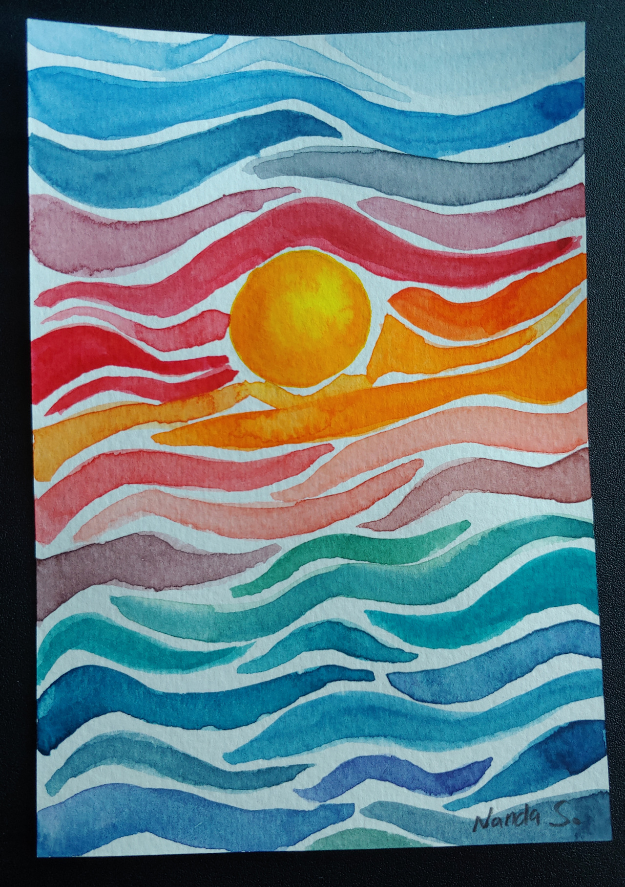 물감은 물감이요 물은 물인 것을 거기에 내 찌뿌둥한 마음을 섞어 칠했을 땐 색이 더 탁한 느낌이었다. 기분좋음을 섞어 칠하니 물결 꼬리 모양도 더 이쁘게 동그래지고 종이도 덜 울었다.