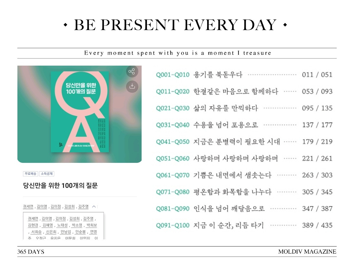 - 3월의 마지막날! 드디어 랜선코칭클럽에서 100일간 25분의 코치님들과 함께 질문하고 답했던 기록이 책이 되어 나왔다. [당신만을 위한 100개 질문]