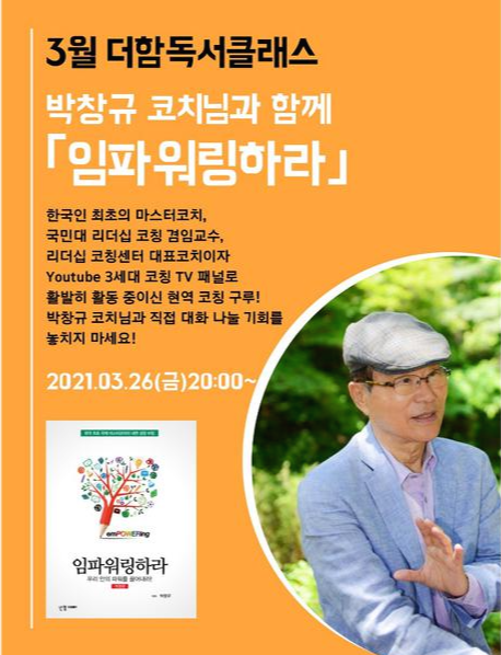 - 3/26 더함독서클래스 포스터 디자인 및 박창규 코치님과 함께하는 '임파워링하라' 독서모임 참여 : 오상아