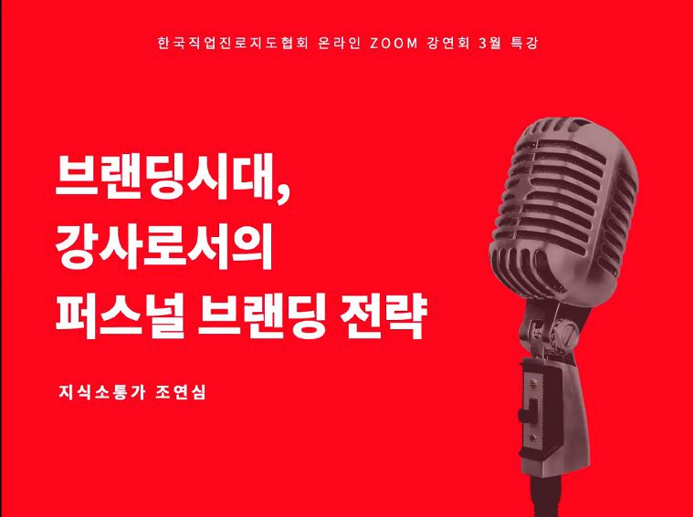 - 3/31 한국직업진로지도협회 주최, 조연심대표님의 브랜딩시대, 강사로서의 퍼스널브랜딩전략 온라인 특강 참여