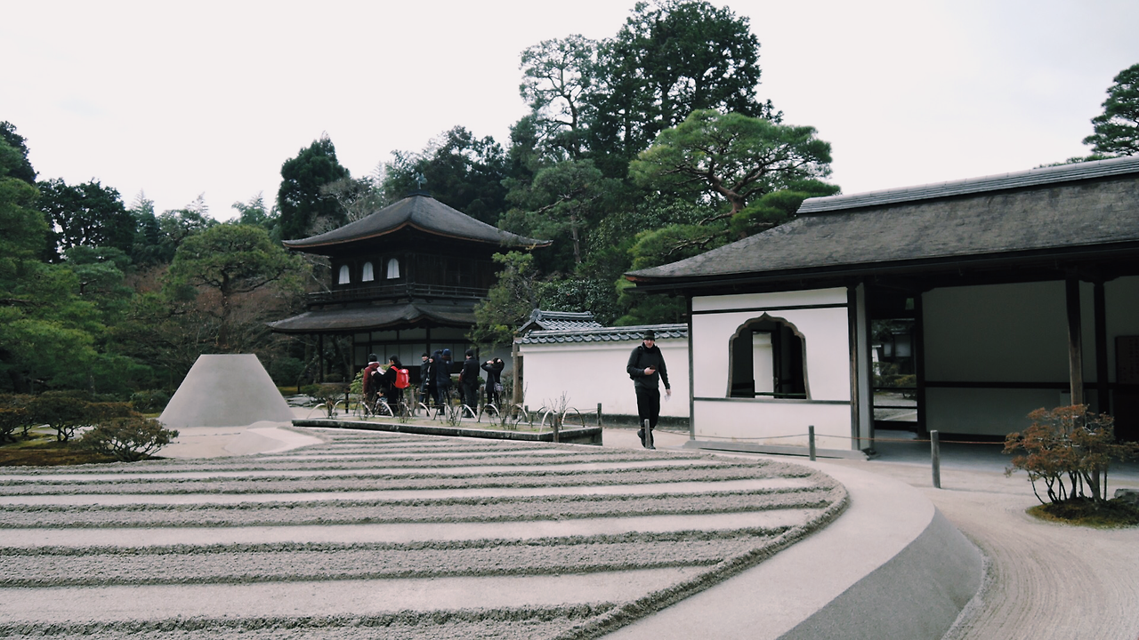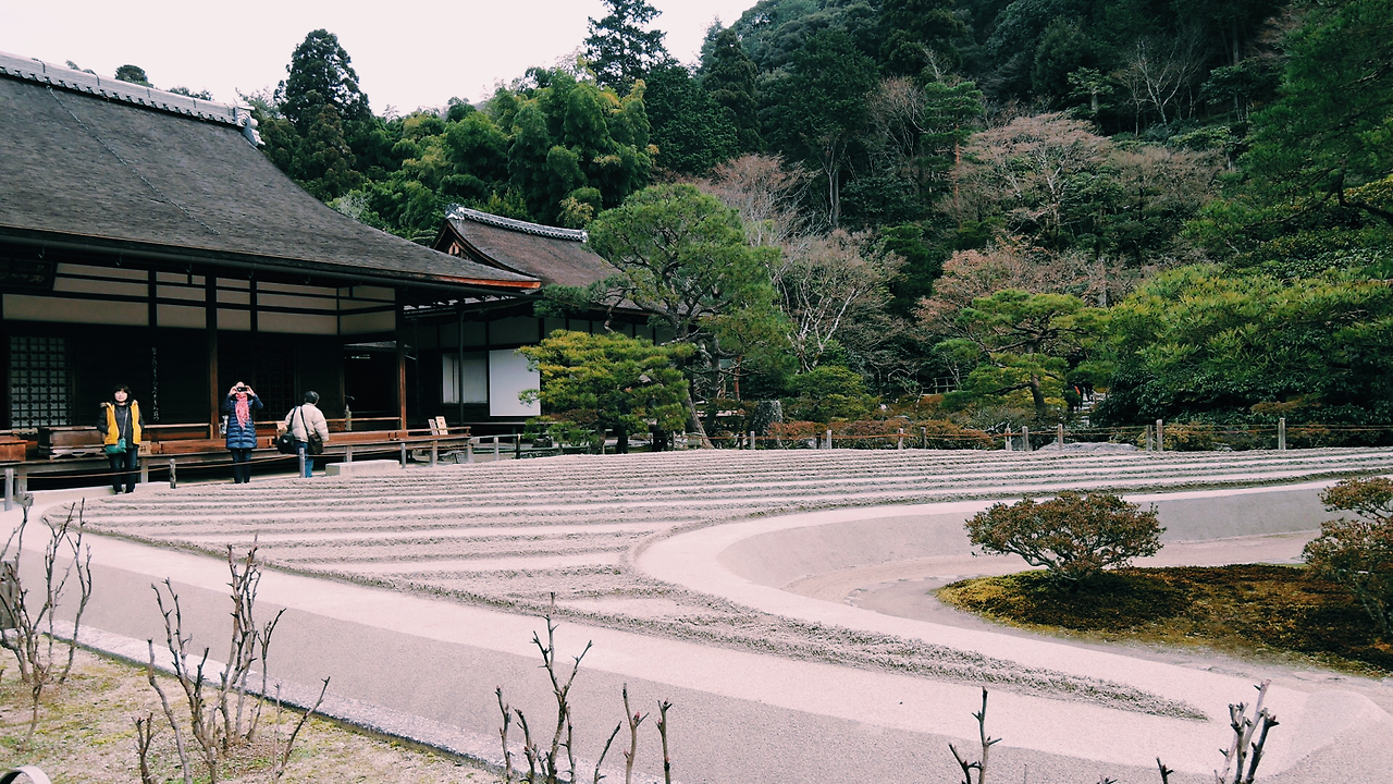 아침마다 커피를 마시는 게 습관이 돼서 료칸에서도, 자판기에서도, 커피집에서도 커피를 마셔보았지만 정말 맛없다. 향도 없고 맛도 안 난다. 내가 무슨 커피 전문가도 아니지만 그래도 너무할 정도로 맛이 없었다. 그냥 차를 많이 드시길. 아무튼 은각사부터 구경 시작.