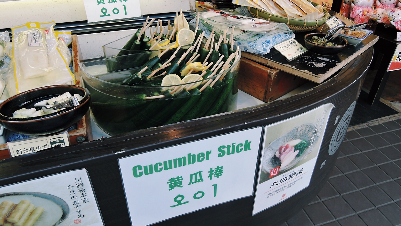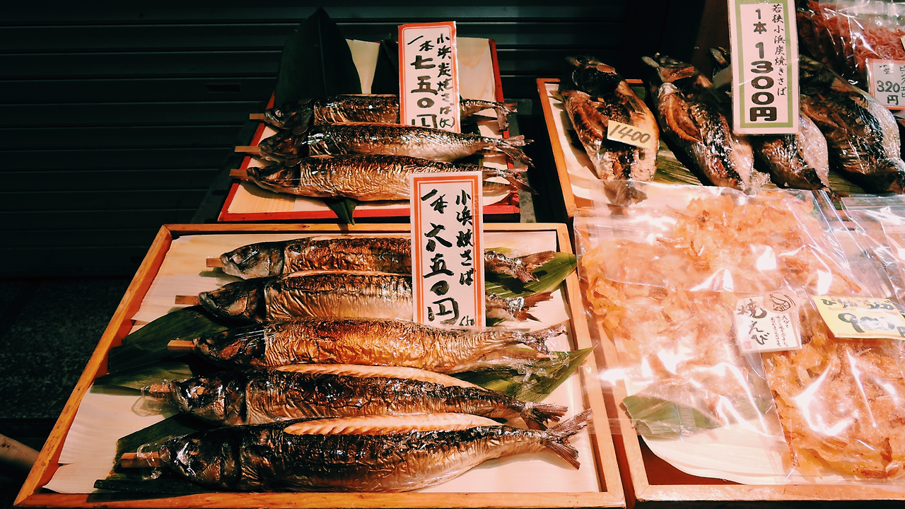 기온거리에서 다시 가와라마치역을 지나 니시키 시장에 들렀다. 먹을거리를 기대하고 들렀지만 저녁 시간 때라 그런지 생각보다 먹거리가 없었다. 고등어 초밥을 먹었는데 비리기만 했다.